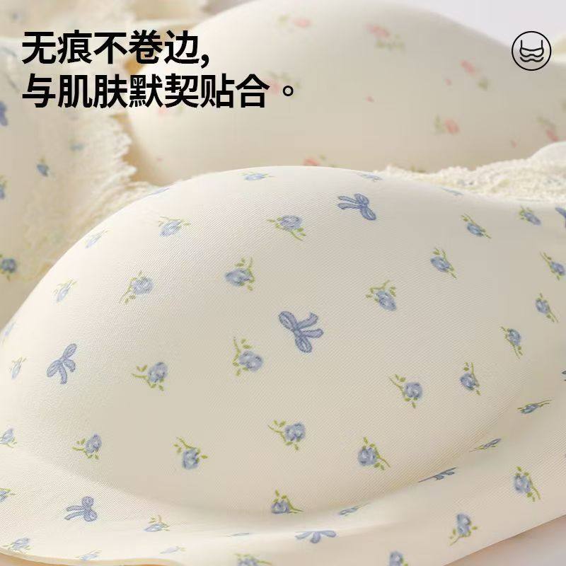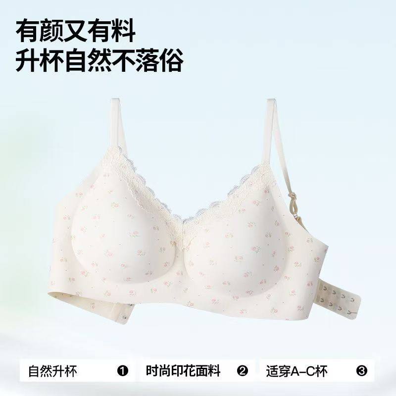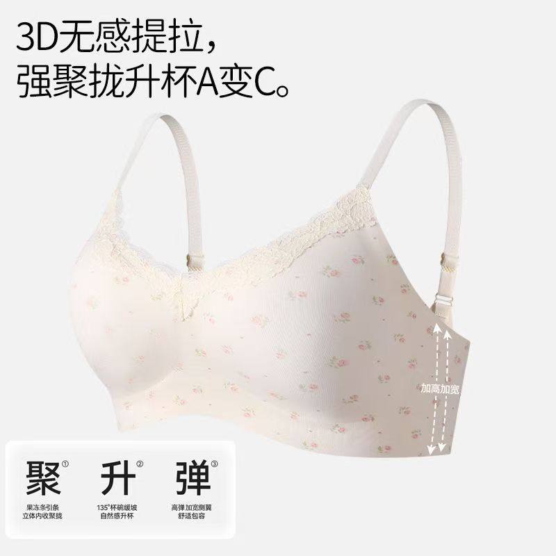 天猫法式蕾丝碎花文胸女无钢圈聚拢无痕软支撑舒适内衣防下垂上托胸罩