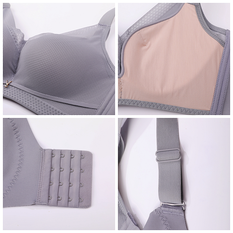 婷美妈妈内衣女聚拢防下垂收副乳无钢圈无痕大码前开扣背心式文胸