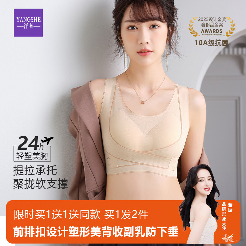 天猫洋奢交叉式提拉无痕内衣女收副乳聚拢防下垂舒适上托调整型文胸罩