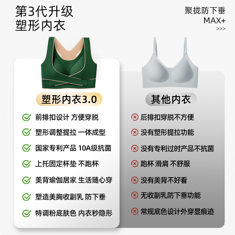 天古今新中式聚拢提拉内衣女7A抗菌隐形粉底液防下垂收副乳文胸罩