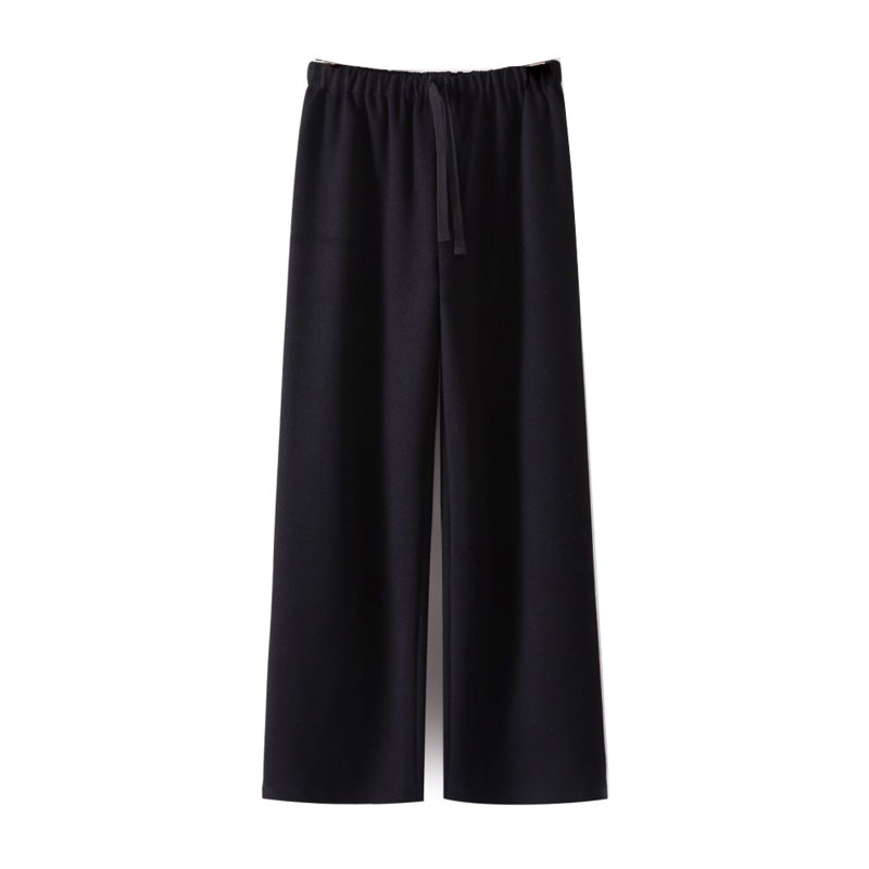 淘宝羊毛阔腿裤女垂感慵懒风抽绳直筒长裤秋冬加厚外穿裤2025年秋冬款