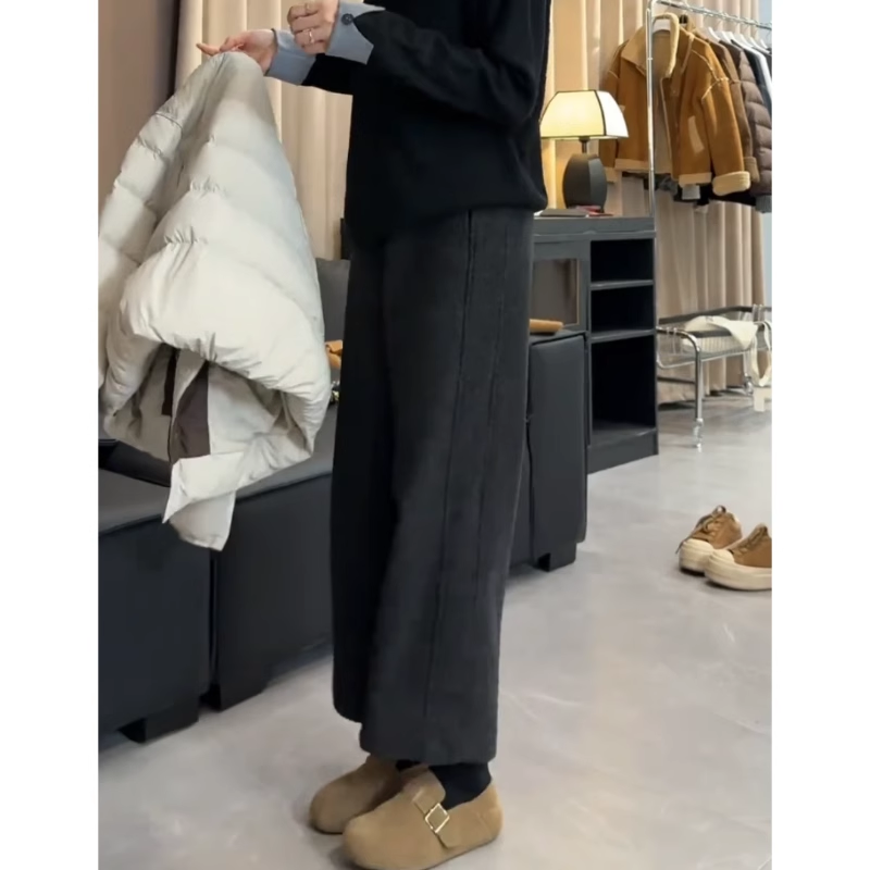 淘宝今年流行的爆款裤子女2025新款秋冬加绒大码毛呢阔腿裤宽松直筒裤