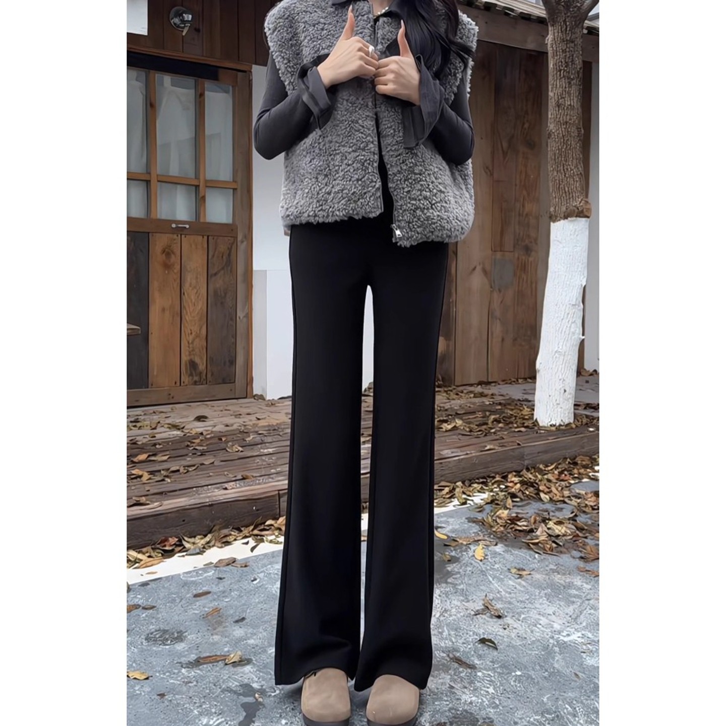 淘宝黑色加绒不贴腿微喇西装裤女2025年冬季新款小个子窄版直筒喇叭裤