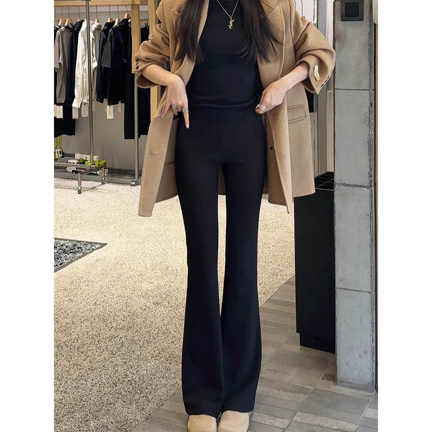黑色加绒不贴腿微喇西装裤女2025年冬季新款小个子窄版直筒喇叭裤