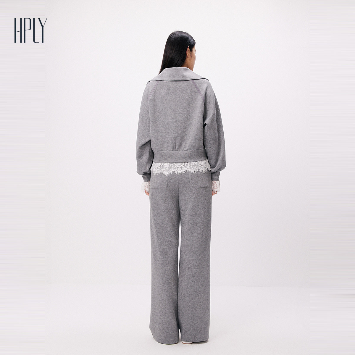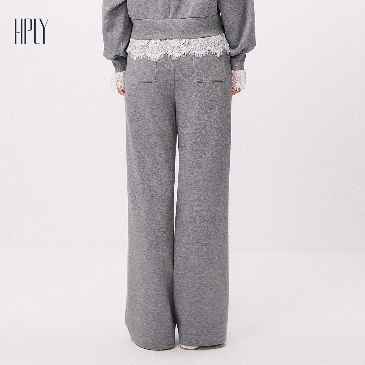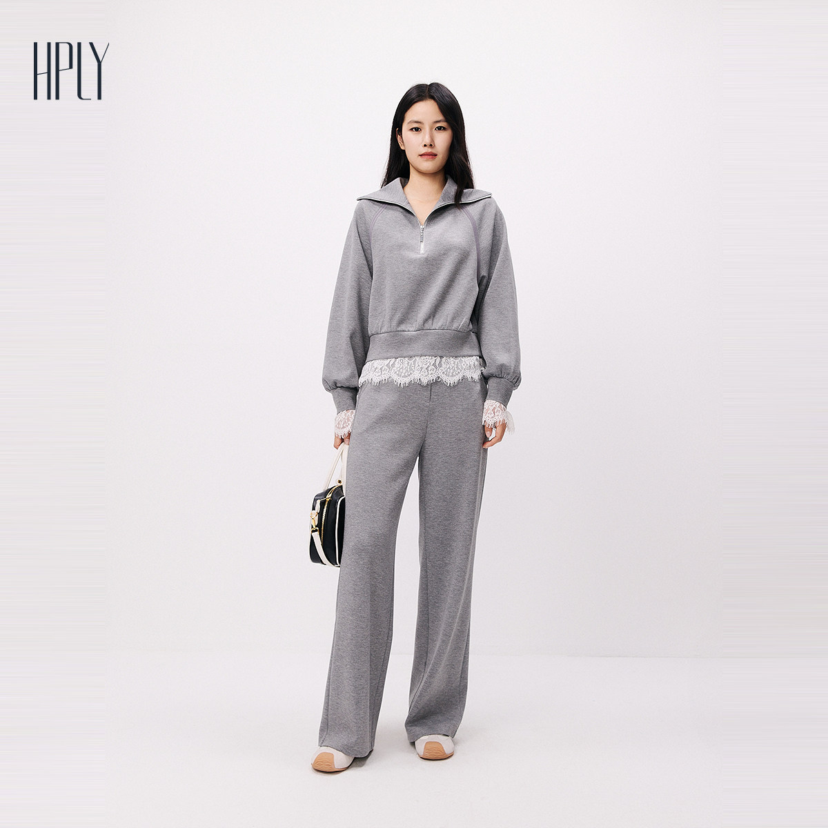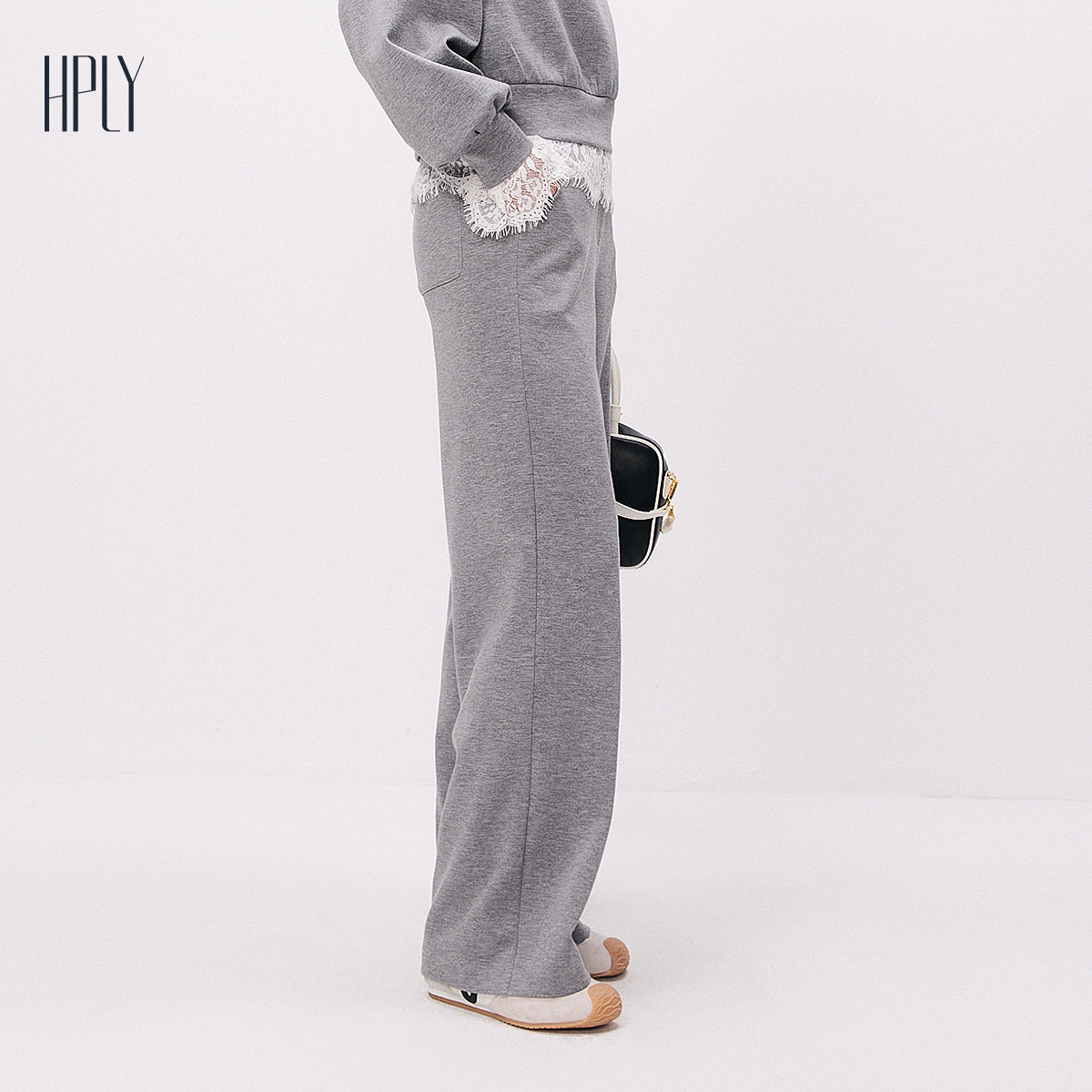 天猫HPLY荷比俪2025秋新款女简约慵懒时尚日常通勤高腰直筒休闲长裤