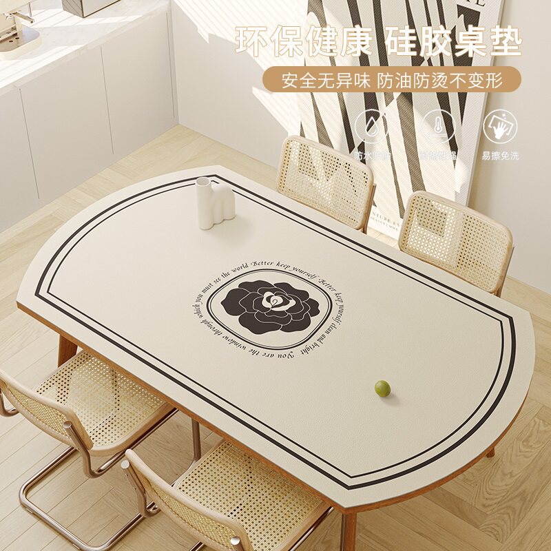 淘宝简约高级感椭圆形餐桌桌布防水防烫防油折叠圆桌桌垫弧形茶几台布