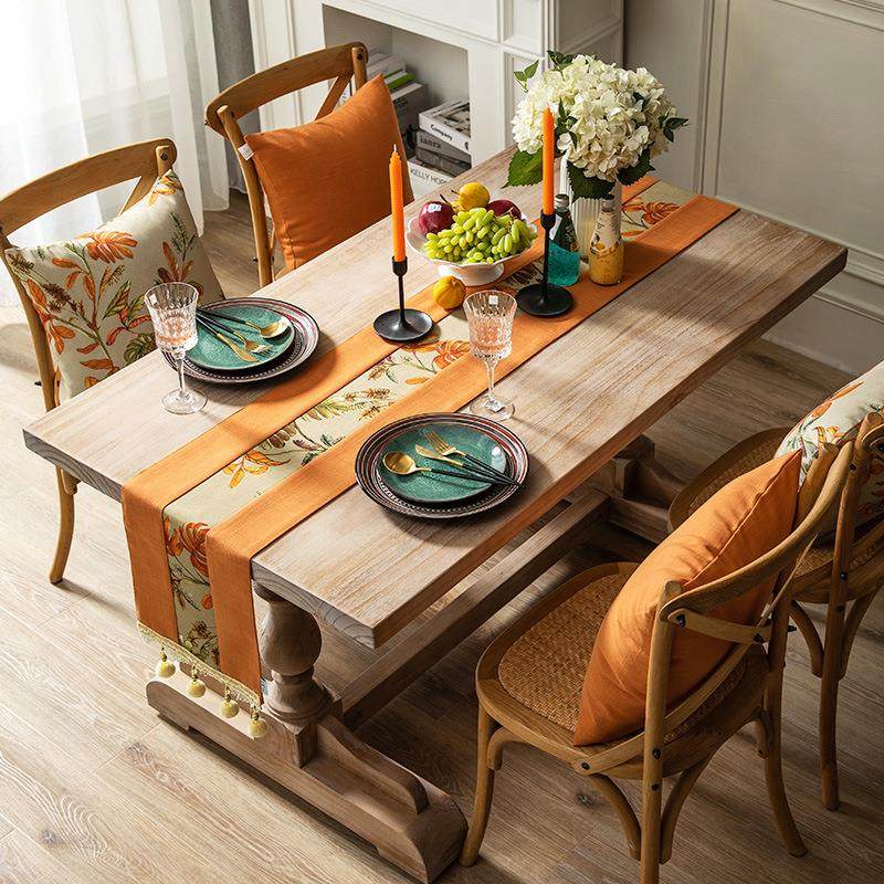淘宝北欧现代轻奢风格橘色桌旗美式橙色茶几装饰布长条餐桌布布艺家用