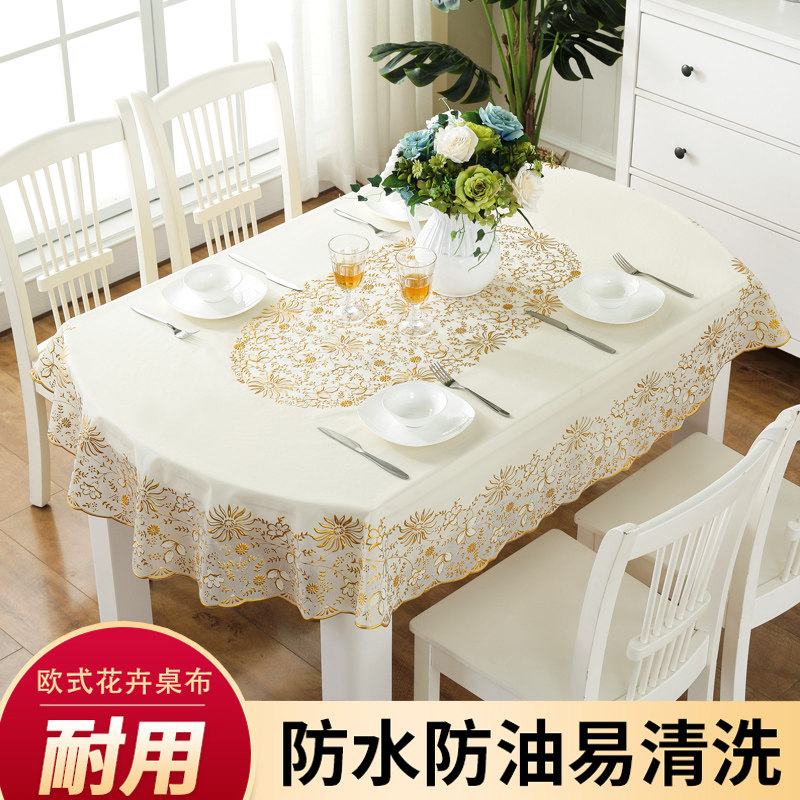 淘宝椭圆形pvc桌布防水防油防烫折z叠餐桌布家用塑料欧式烫金圆形台布