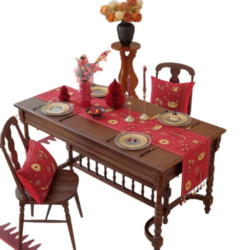 淘宝中式红桌旗喜庆订婚桌布茶几电视柜鞋柜盖巾民宿床旗抱枕年年有鱼