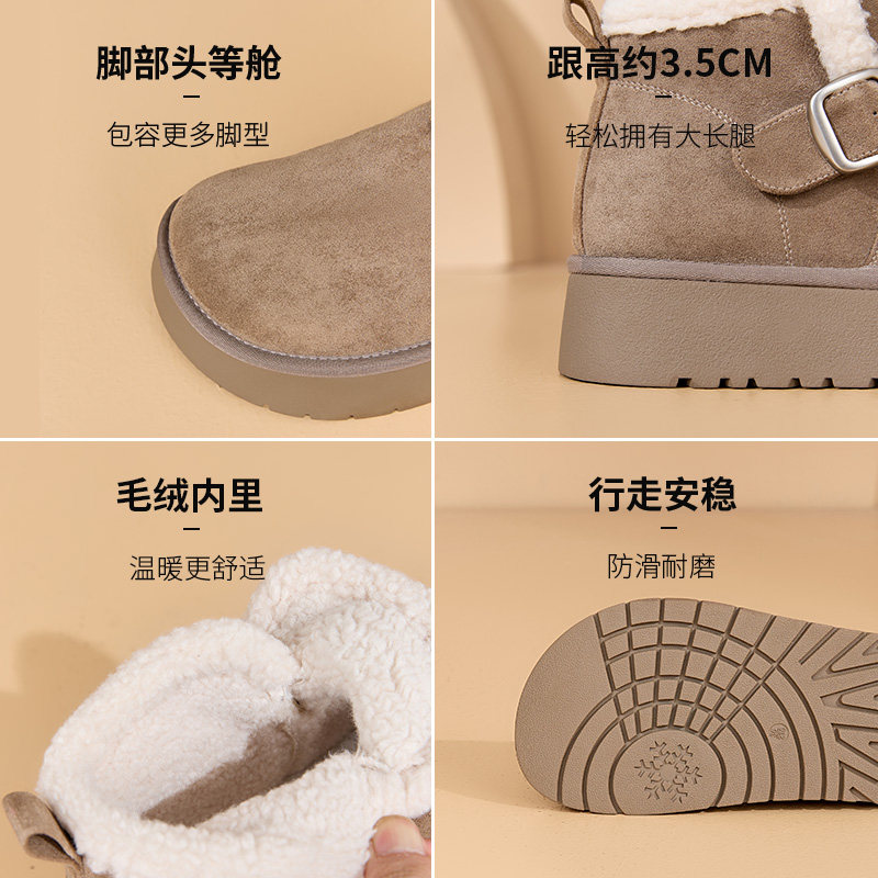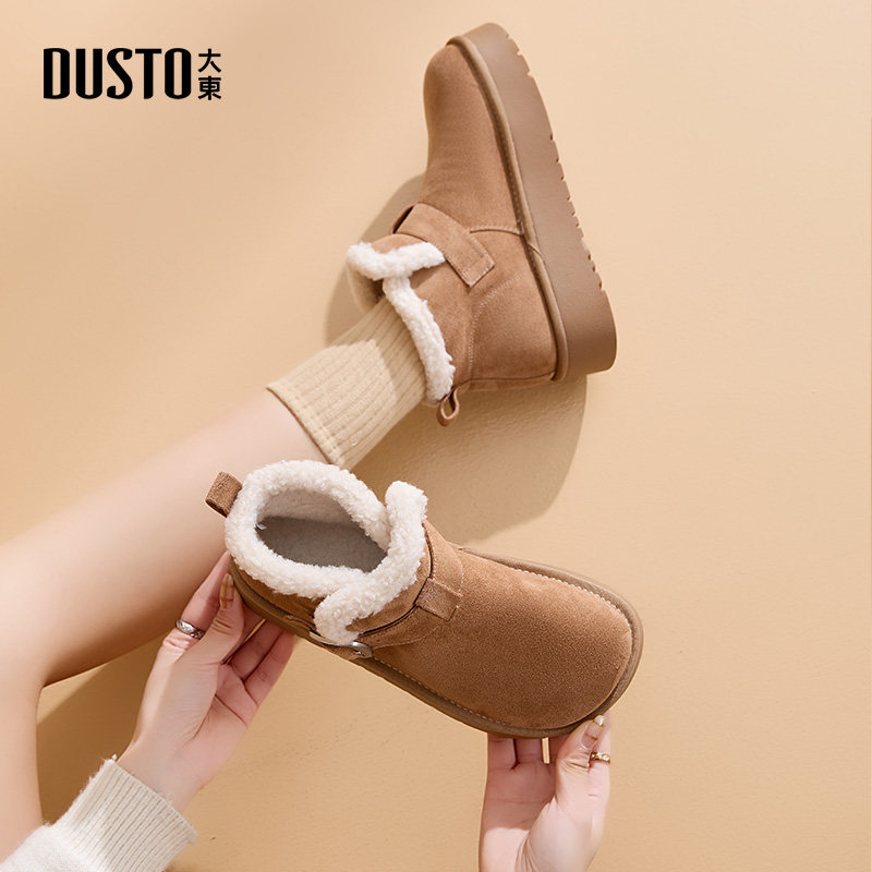 天猫大东雪地靴女鞋2025冬季新款休闲松紧带平底中跟圆头D0723