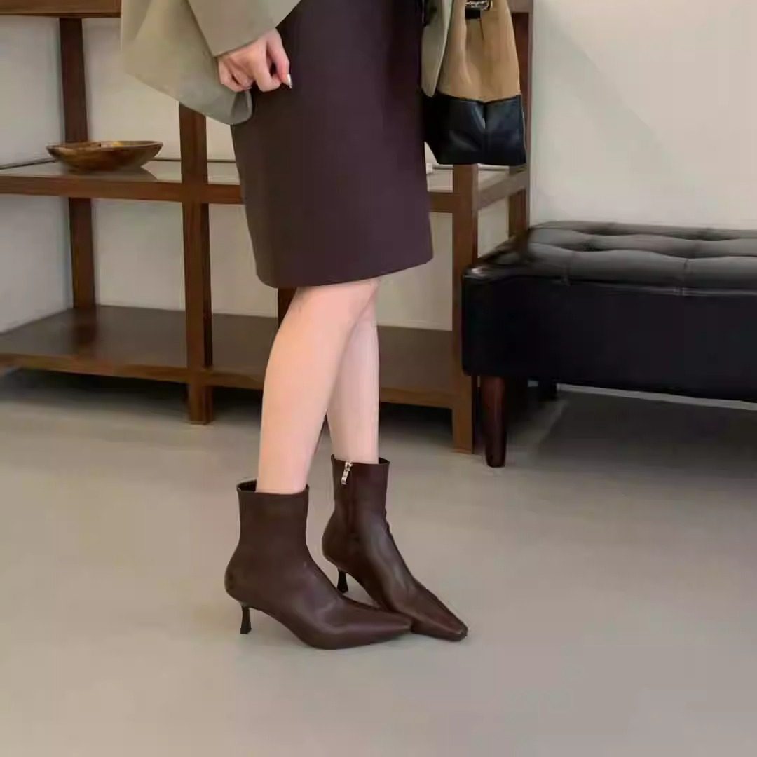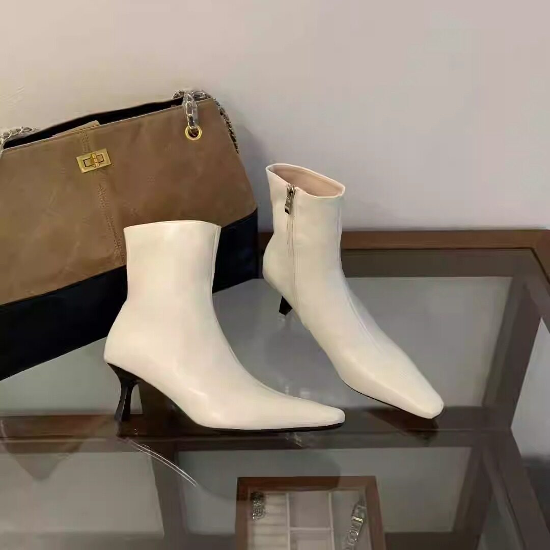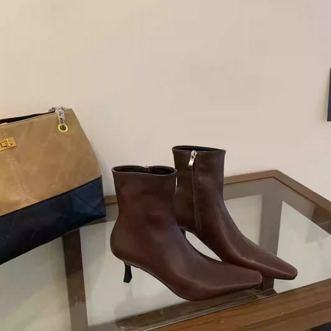 淘宝十三行女鞋实拍小众设计感方头粗跟马丁靴短筒百搭个性气质时装靴