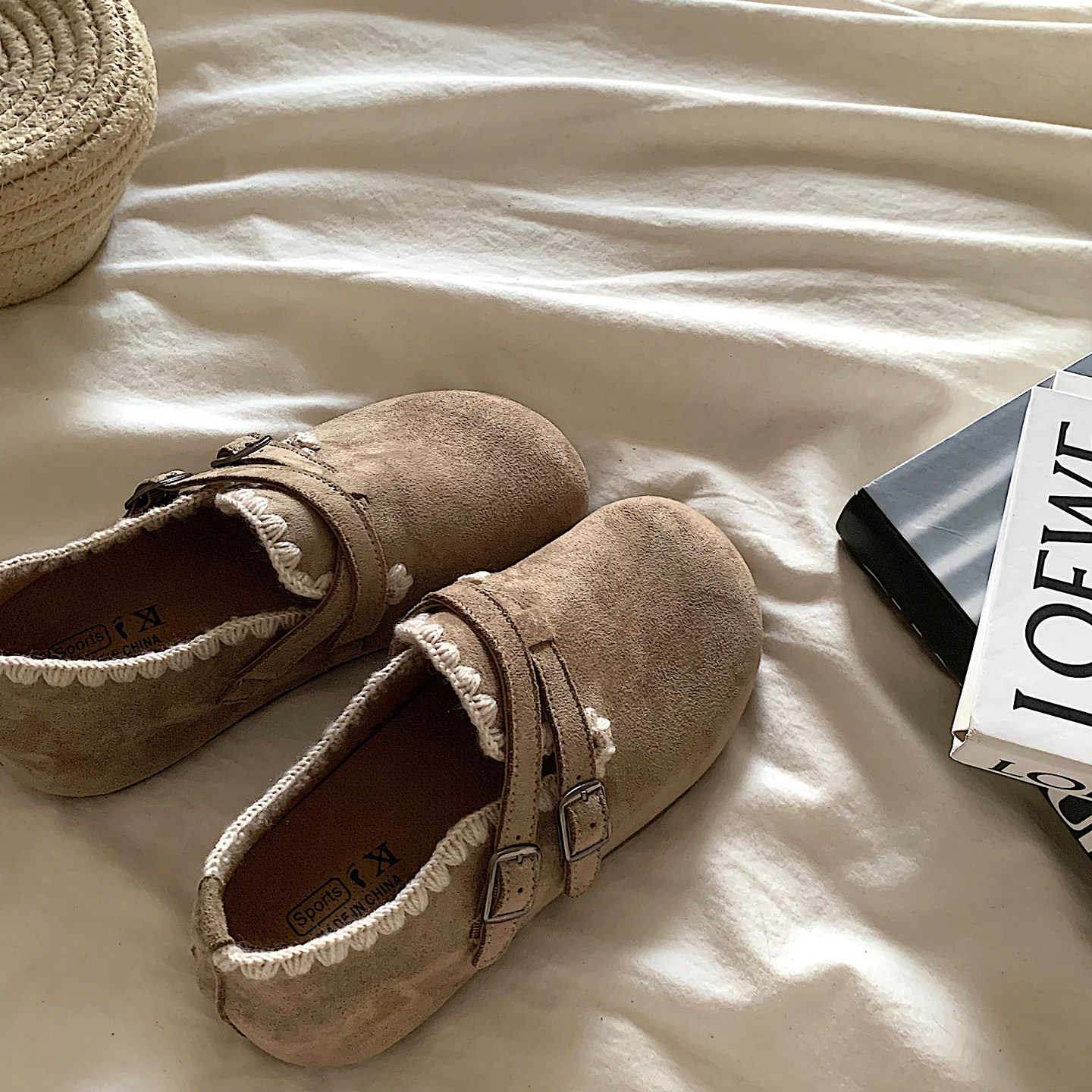 淘品牌撤柜真皮全包复古勃肯鞋女2025冬季新款加绒保暖一脚蹬毛毛鞋