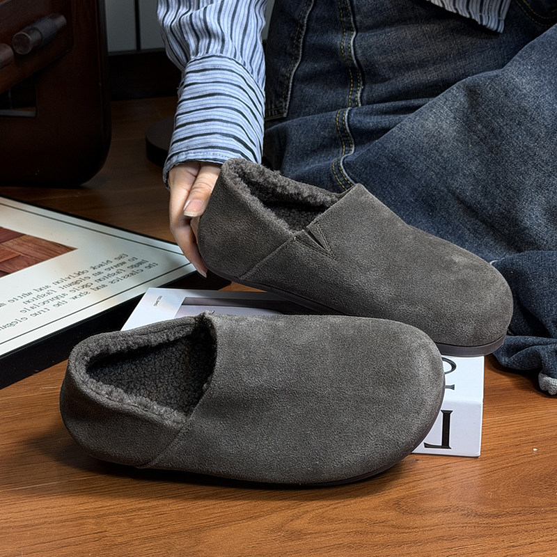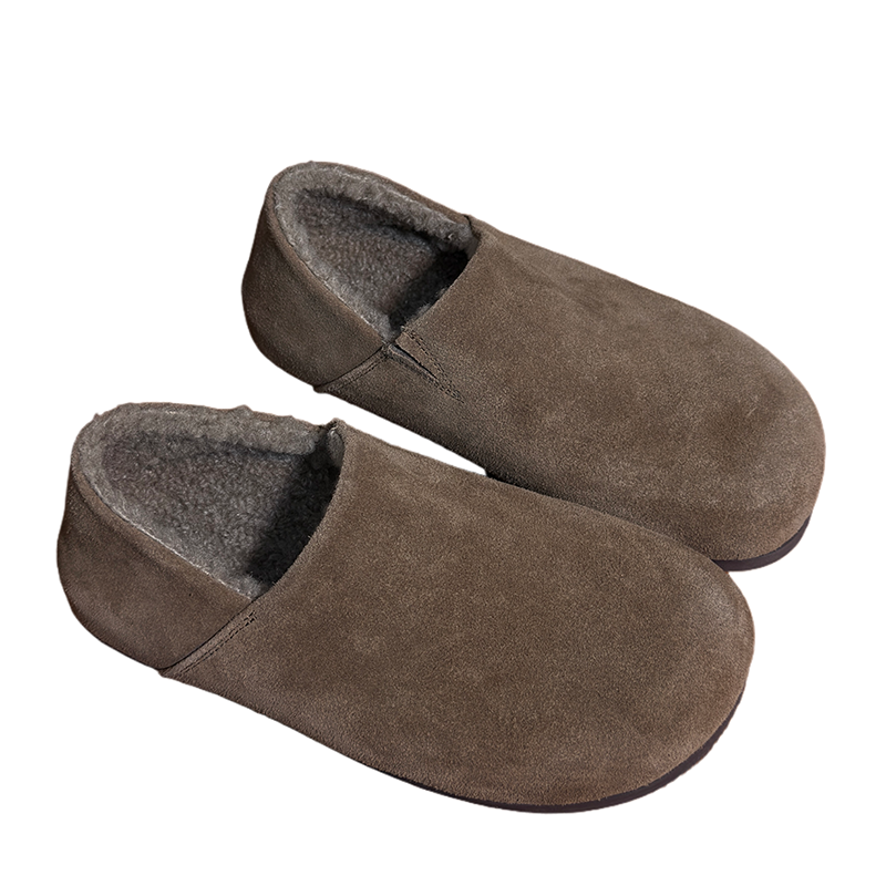 淘宝磨砂真皮复古大头勃肯鞋女2025冬季新款加绒保暖厚底懒人鞋乐福鞋