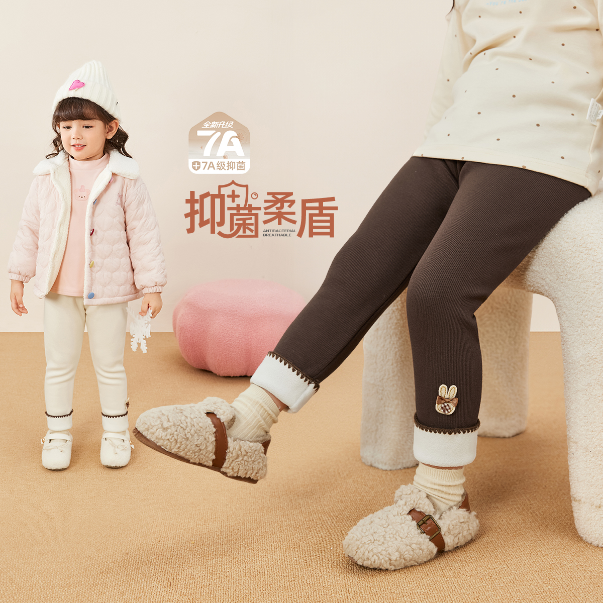米米哈罗女童加绒打底裤冬装2025新款儿童一体绒裤子小女孩保暖裤