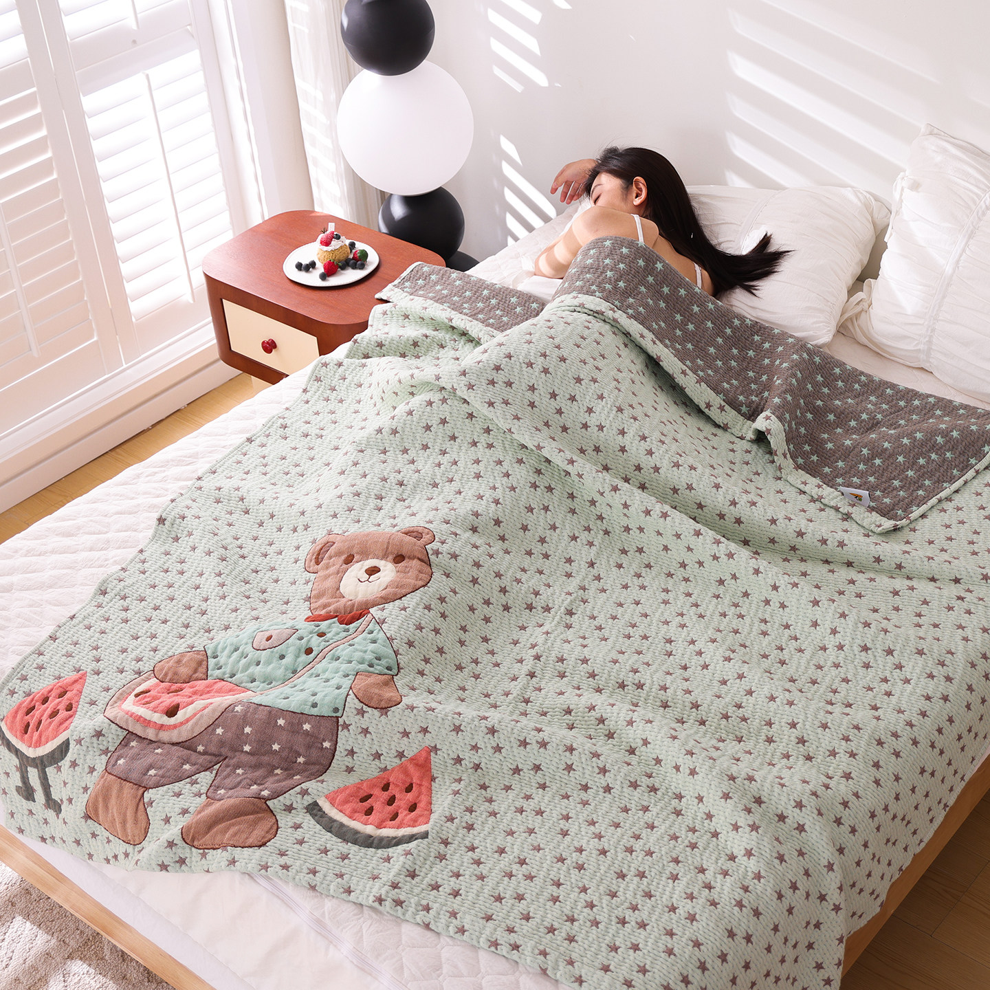 这款纯棉纱布毛巾被,采用优质全棉材质,柔软亲肤、透气吸汗,带来如云般的舒适体验。轻盈蓬松的纱布结构,四季皆宜,尤其适合午睡、居家或沙发小憩时使用。简约设计中融入可爱卡通元素,增添温馨童趣,兼具实用与美感。单人尺寸设计,方便携带与收纳,是成人日常家居的理想选择。无论是自用还是馈赠亲友,这款高级感十足的盖毯都能提升生活品质,让每一刻休憩都充满温暖与惬意。环保印染工艺,安全无刺激,呵护敏感肌肤,安心享受舒适时光。