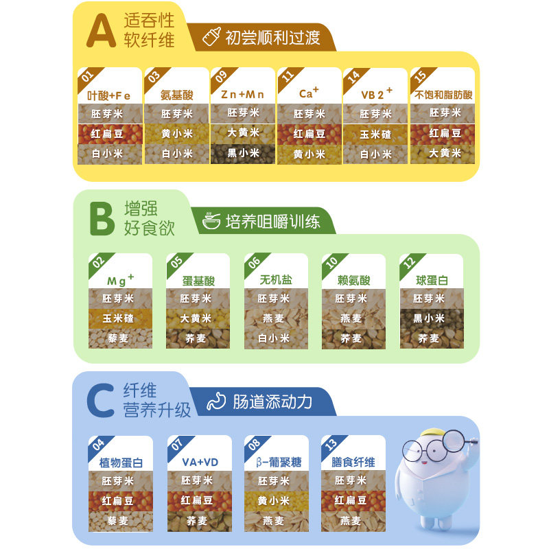 芽芽乐15天多谷物有机胚芽米儿童五谷杂粮粥,专为6个月以上宝宝精心研制,严选有机胚芽米、小米、藜麦、燕麦等十余种天然谷物,科学配比,保留胚芽营养精华,富含膳食纤维、维生素B族及矿物质,助力宝宝健康成长。采用分段式15天渐进配方,由单一到多样,温和引入辅食,降低过敏风险。无添加糖、盐、防腐剂,口感软糯易消化,适合初添辅食的宝宝。搭配附赠营养辅食谱,指导家长科学喂养,轻松制作营养美味粥品。芽芽乐,用有机守护宝宝每一口,开启健康饮食第一步。