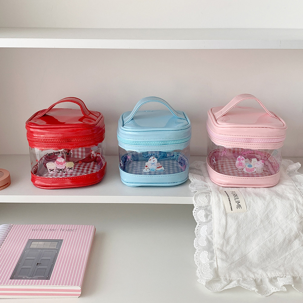 淘宝Hisocute卡通透明手提遛娃包少女玩偶公仔收纳包学生便携化妆包