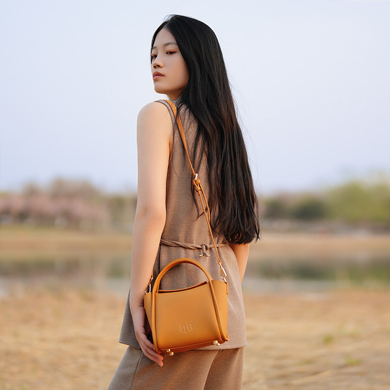 2026新款节日礼物QG水桶包,精选头层牛皮打造,质感细腻,耐用且富有光泽。设计融合经典与现代,水桶包型实用百搭,搭配斜挎肩带,轻松满足通勤、约会或日常出行需求。独特元宝包口设计,兼具“菜篮子”的随性美感与精致细节,寓意吉祥富贵,是节日赠礼的贴心之选。内部空间宽敞,分层合理,轻松容纳手机、钱包、化妆品等随身物品。无论是自用还是赠予亲友,这款QG水桶包都彰显品味与心意,是2026年不可错过的时尚单品。