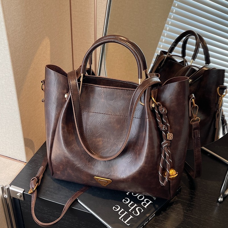 2025年秋冬新款高级感复古女包,融合经典托特包型与实用水桶包设计,打造大容量通勤斜挎包。精选优质复古植鞣牛皮,质感细腻,随时间沉淀愈发温润。包身线条简约利落,配以金属复古扣件与精致车缝线,彰显低调奢华气质。多隔层设计轻松容纳笔记本、通勤用品与日常随身物品,满足职场与出行需求。可手提、可斜挎,适配多种穿搭风格,无论是通勤、约会或休闲场合皆能轻松驾驭。复古而不失现代感,是追求品质与格调女性的秋冬必备单品。