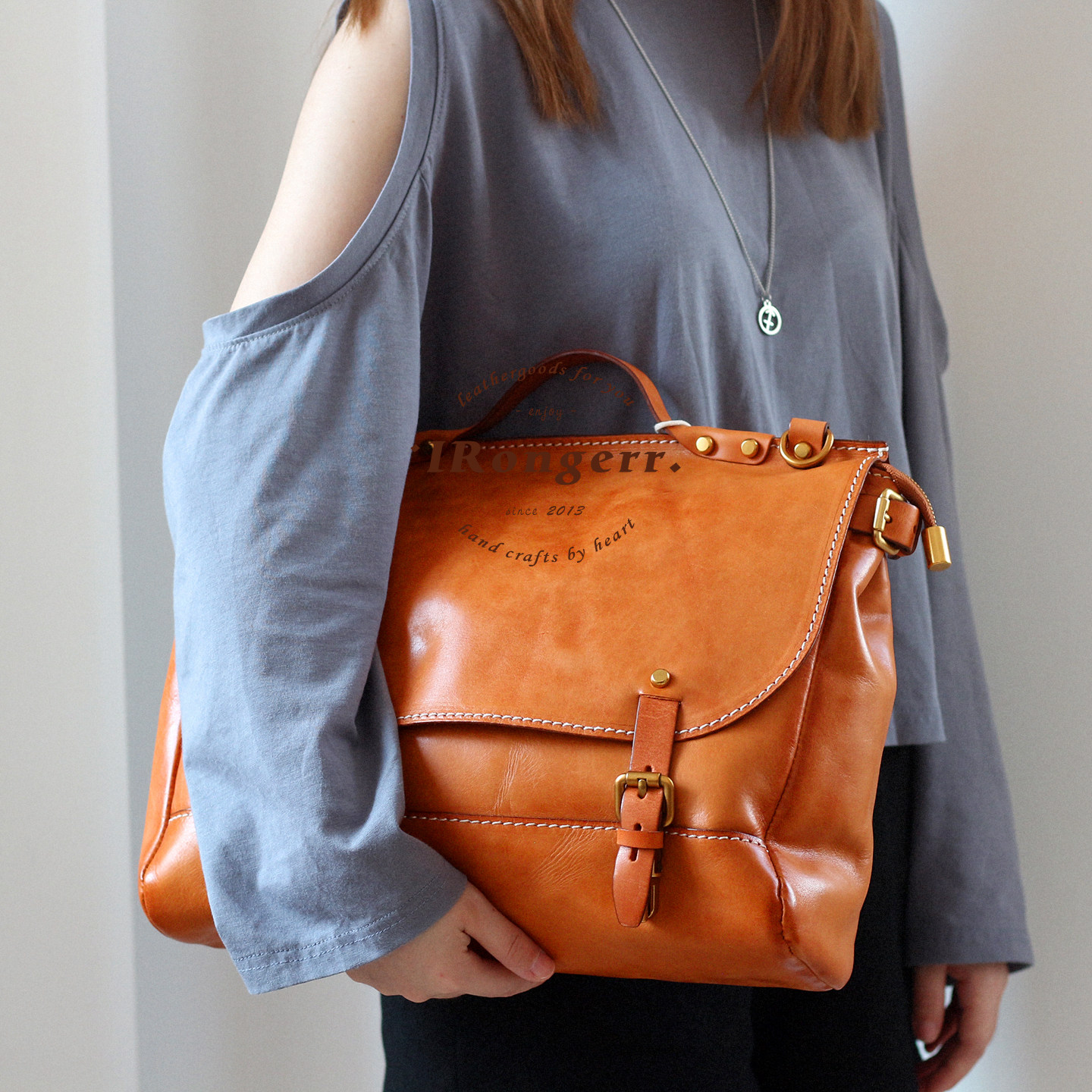 淘宝荣轻复古原创手工擦色邮差包植鞣牛皮手提单肩包商务斜挎大包男女