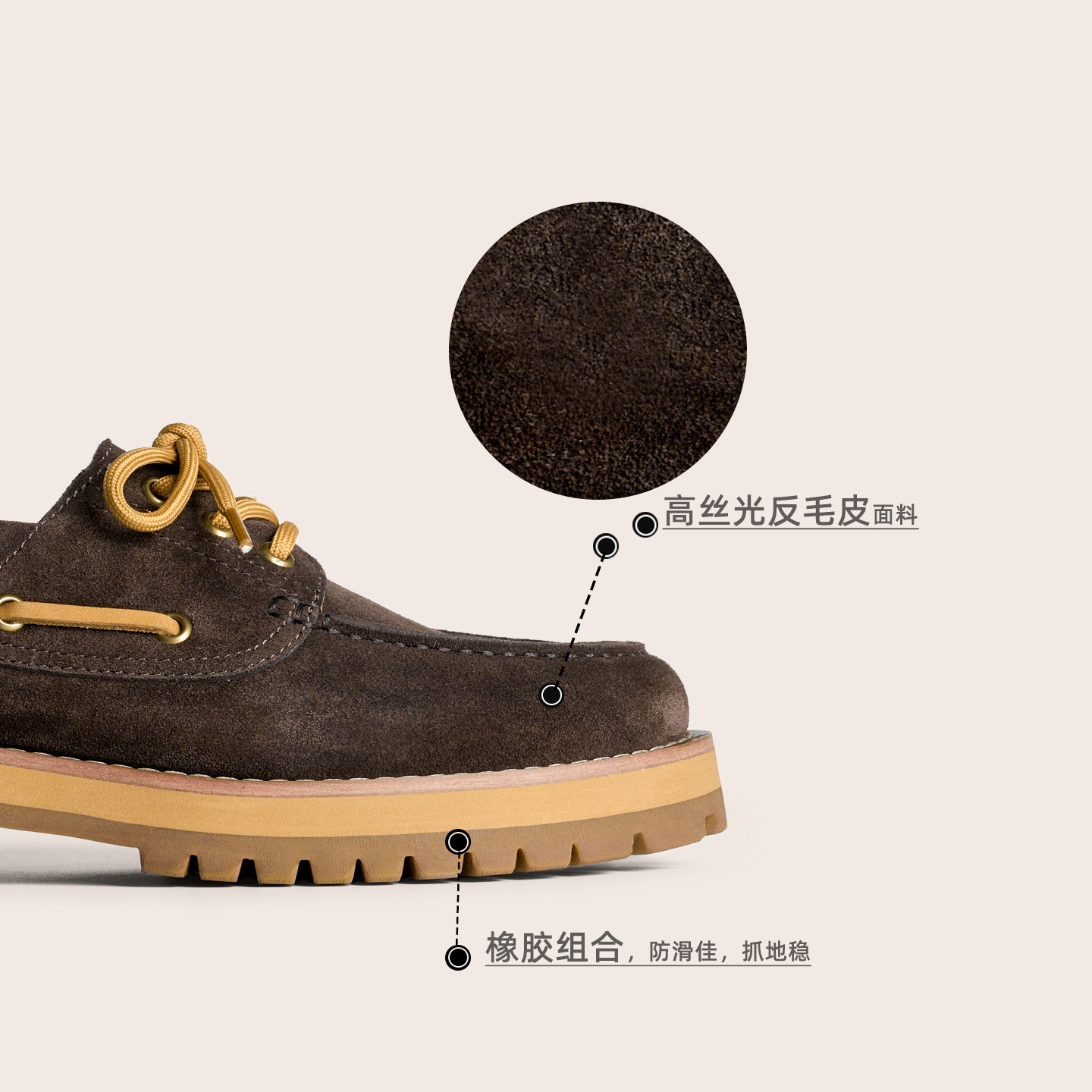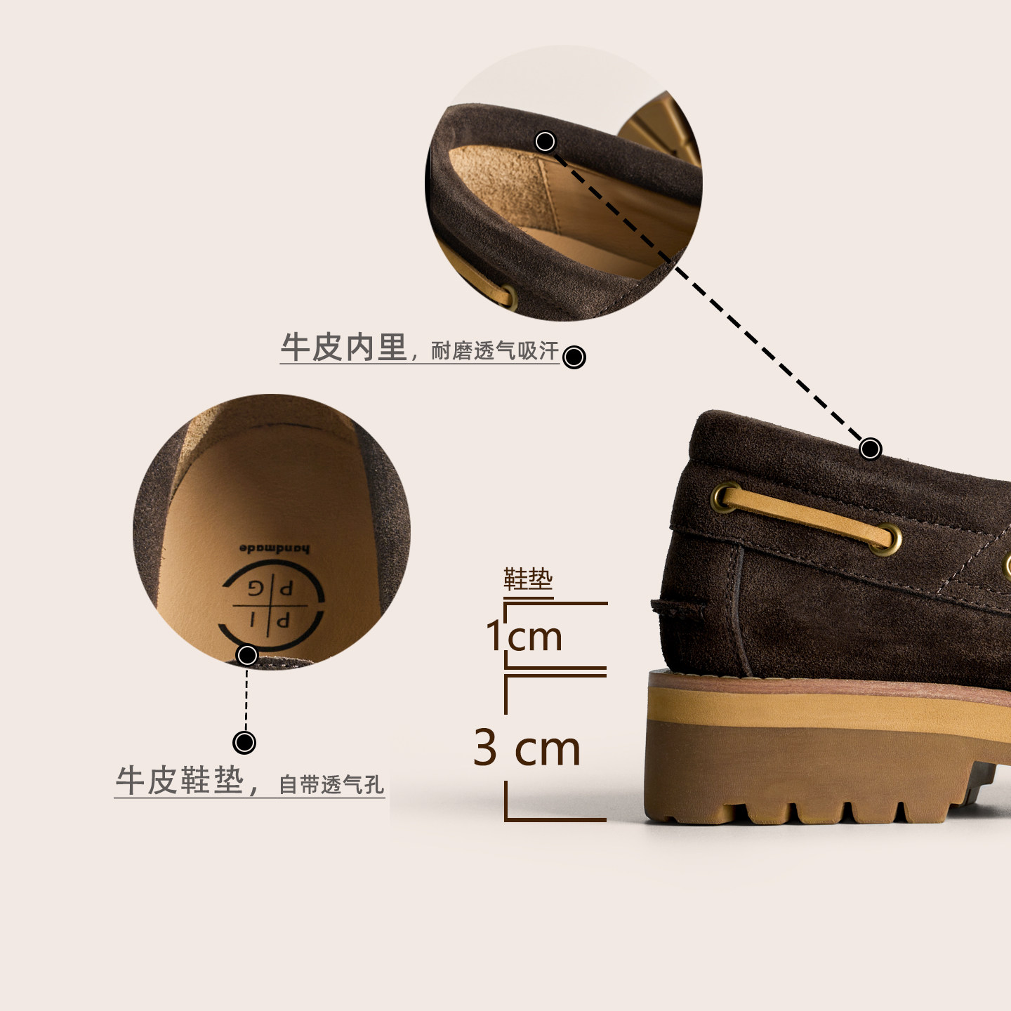 淘宝PIPG复古工装帆三眼船鞋男 牛反绒皮百搭乐福鞋 厚底增高休闲皮鞋