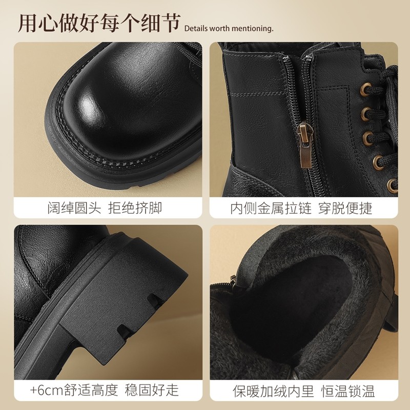 ZHR英伦风马丁靴女2025新款秋冬加绒厚底雪地靴,专为小个子女生打造,融合经典英伦格调与现代实用设计。采用优质绒面材质,内里加绒保暖,轻松应对寒冷季节。厚底设计自然增高,视觉拉长腿部线条,显高显瘦。短筒版型百搭不挑腿型,搭配裙装或裤装皆宜。防滑耐磨橡胶大底,行走稳健安心。精致车线工艺与金属孔眼细节,彰显品质感。无论是通勤、出行还是日常穿搭,这款马丁靴都能为你增添时尚与温暖,是秋冬不可或缺的时尚单品。