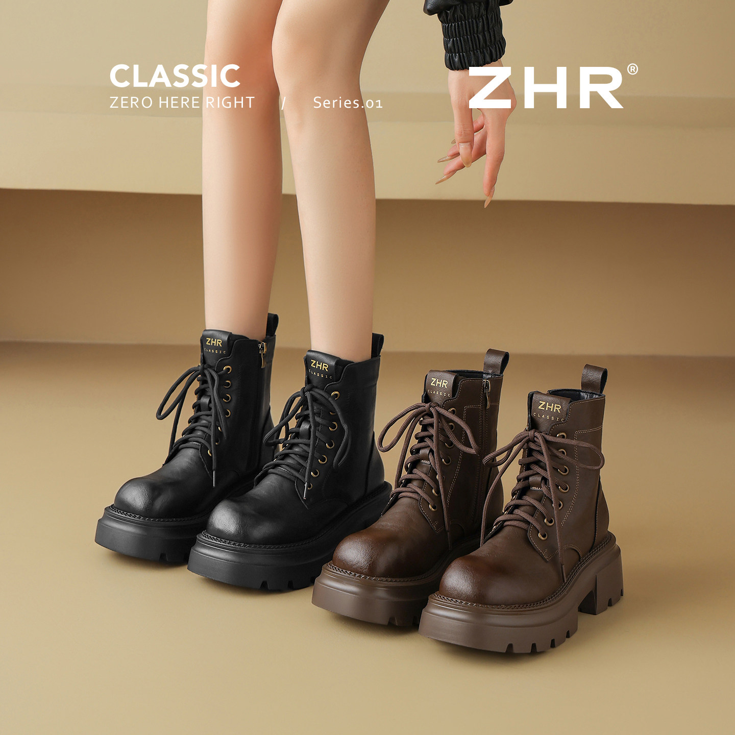 淘宝ZHR英伦风马丁靴女2025新款秋冬加绒厚底雪地靴子增高小个子短靴