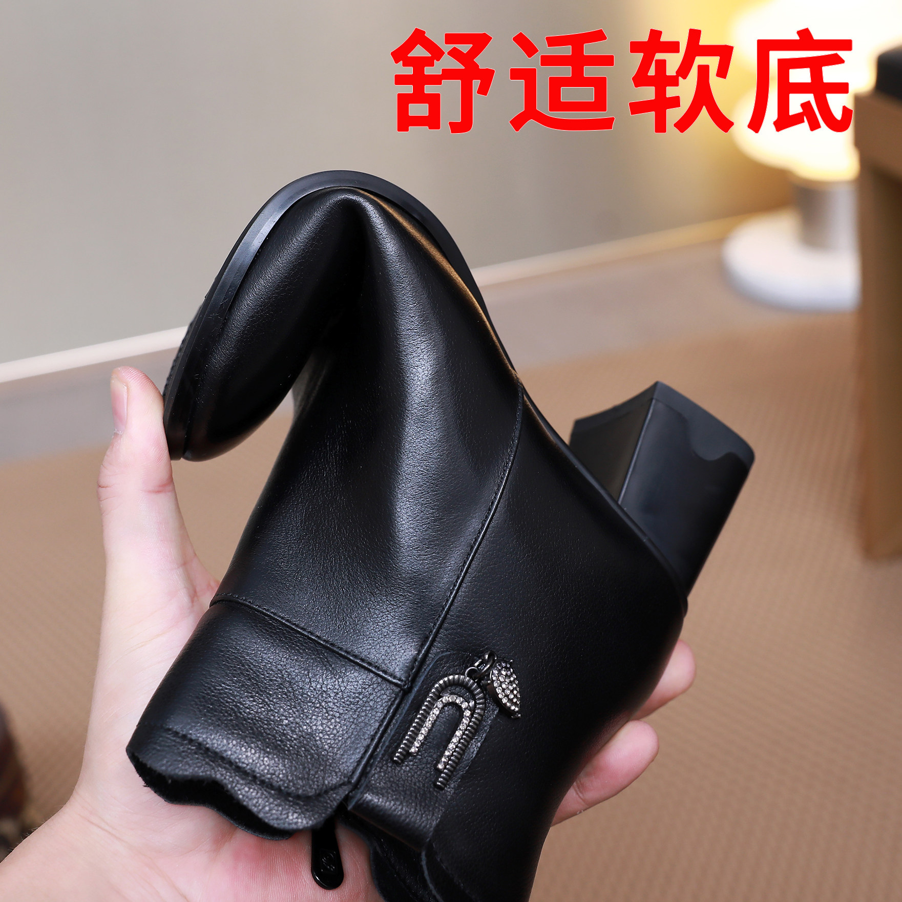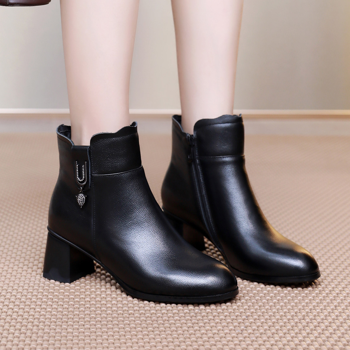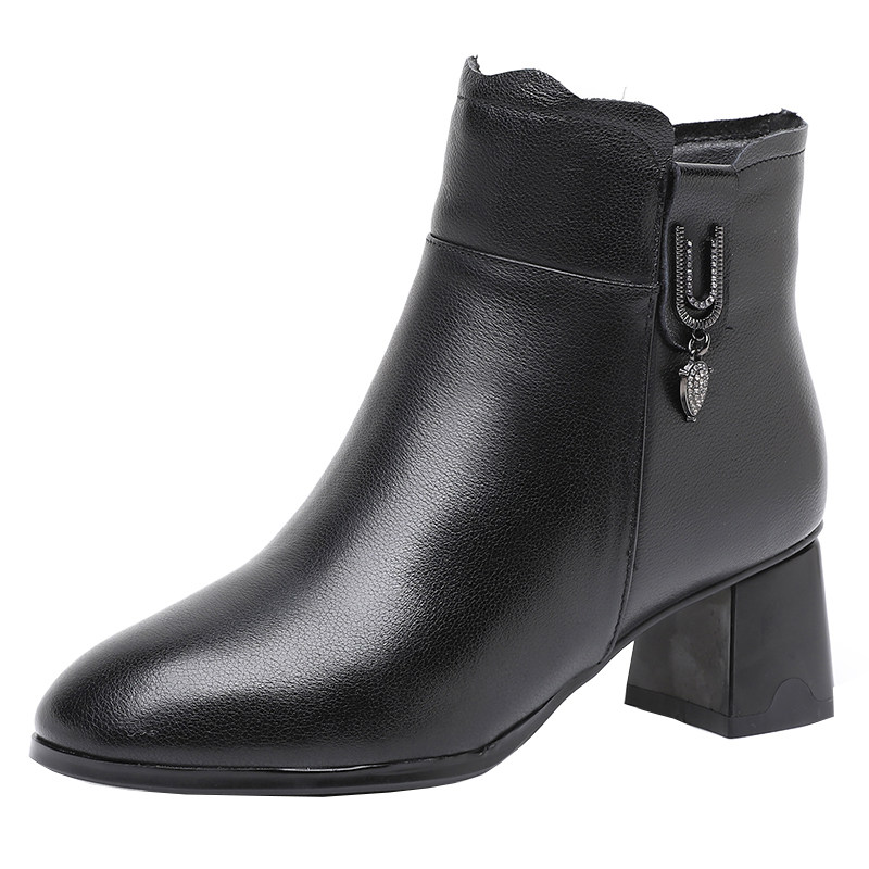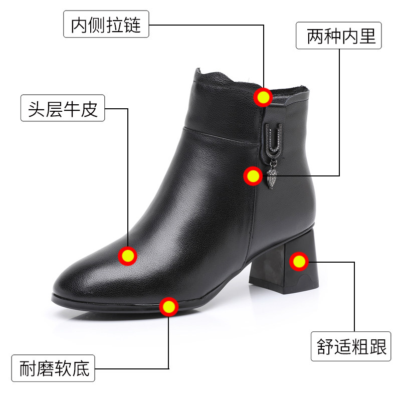 淘宝小码短靴女313233真皮中跟粗跟秋冬新款加绒时尚中年女士妈妈棉鞋