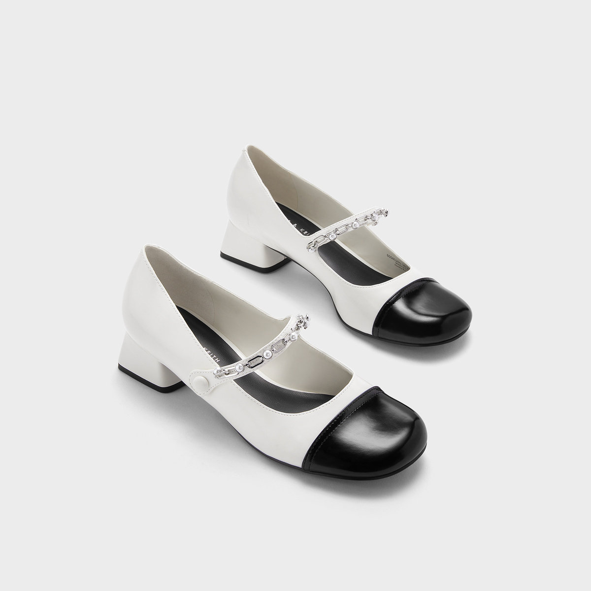 天猫CHARLES&KEITH春季女鞋CK1-60580265优雅拼色粗跟玛丽珍鞋女鞋
