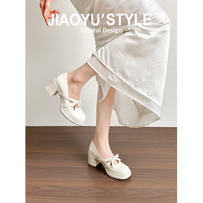 淘宝真皮~骄屿法式裸色厚底高跟鞋女2026春秋新款复古绝美玛丽珍单鞋