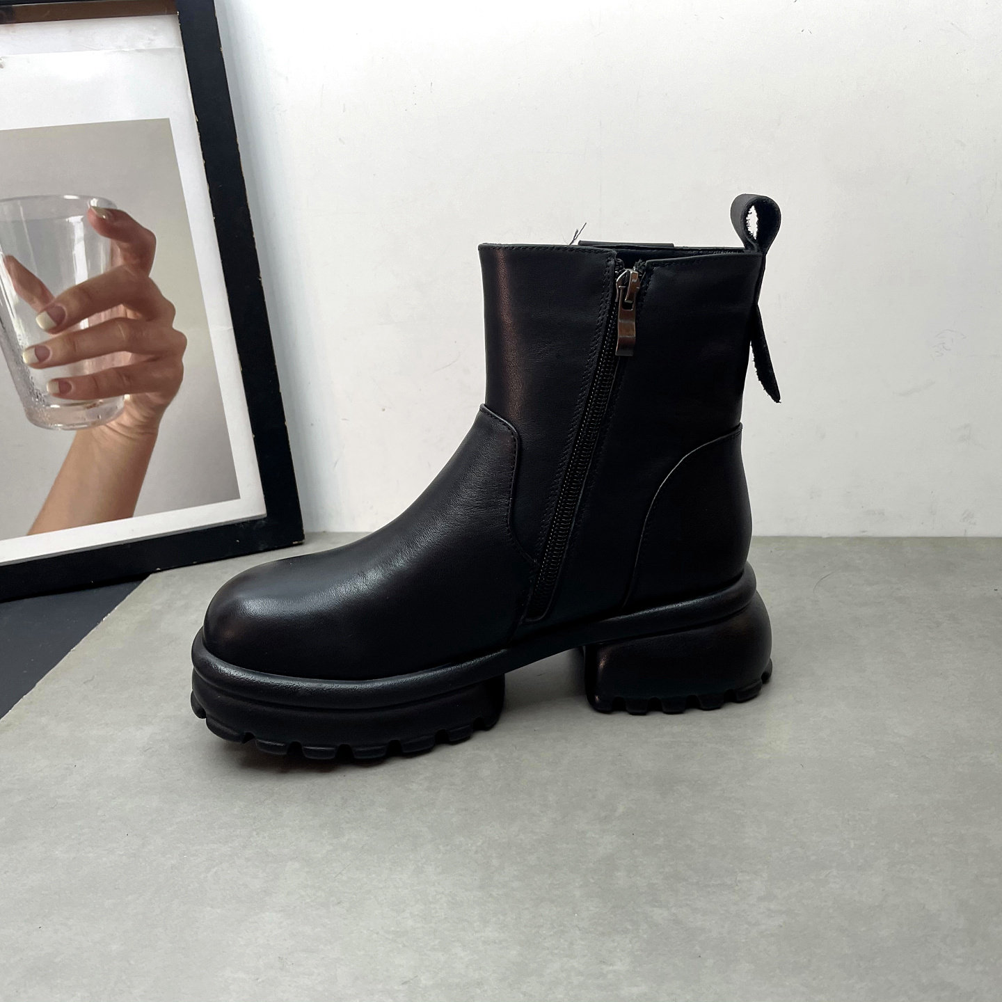 2025年冬季新款真皮女鞋——牛皮机车靴,融合经典机车风与现代舒适设计。精选优质头层牛皮,质感坚韧、耐磨耐穿,彰显高级品味。加厚防滑橡胶大底,稳固支撑,轻松应对湿滑路面。侧边拉链设计,穿脱便捷,搭配加绒内里,保暖透气,寒冬亦能温暖双足。整体造型酷飒有型,兼具马丁靴的硬朗与棉靴的舒适,适合日常通勤、街头穿搭等多种场合。无论是搭配牛仔裤还是裙装,都能轻松驾驭,展现个性魅力。这款厚底拉链马丁靴,是冬季时尚与实用兼具的理想之选。