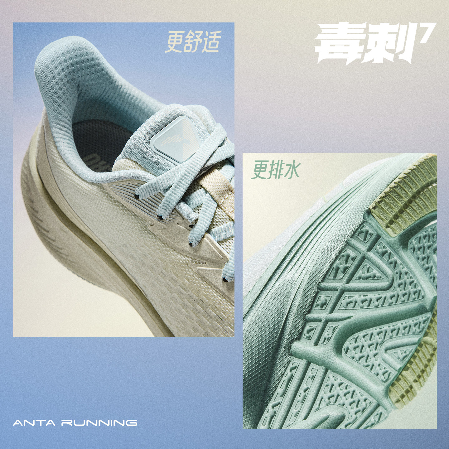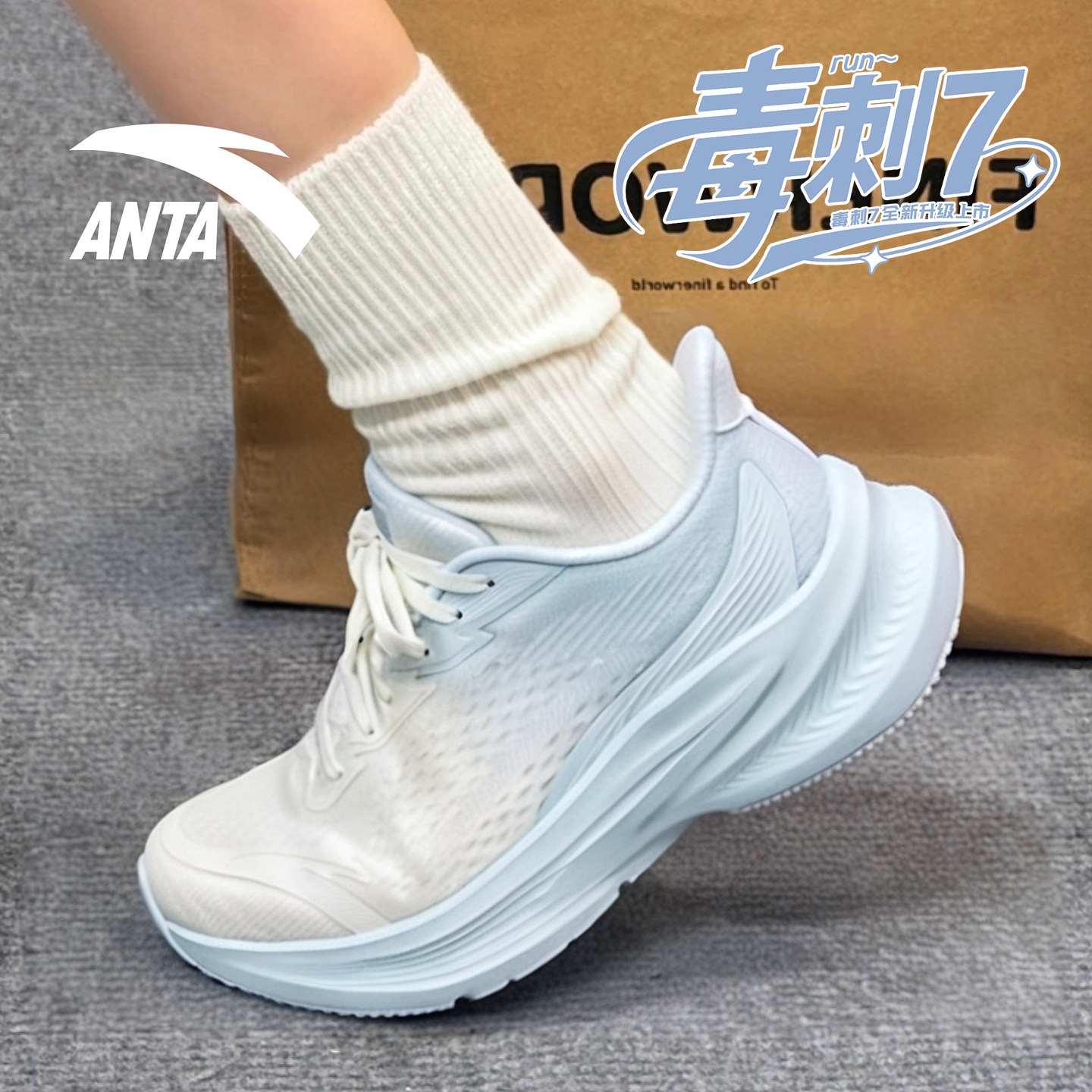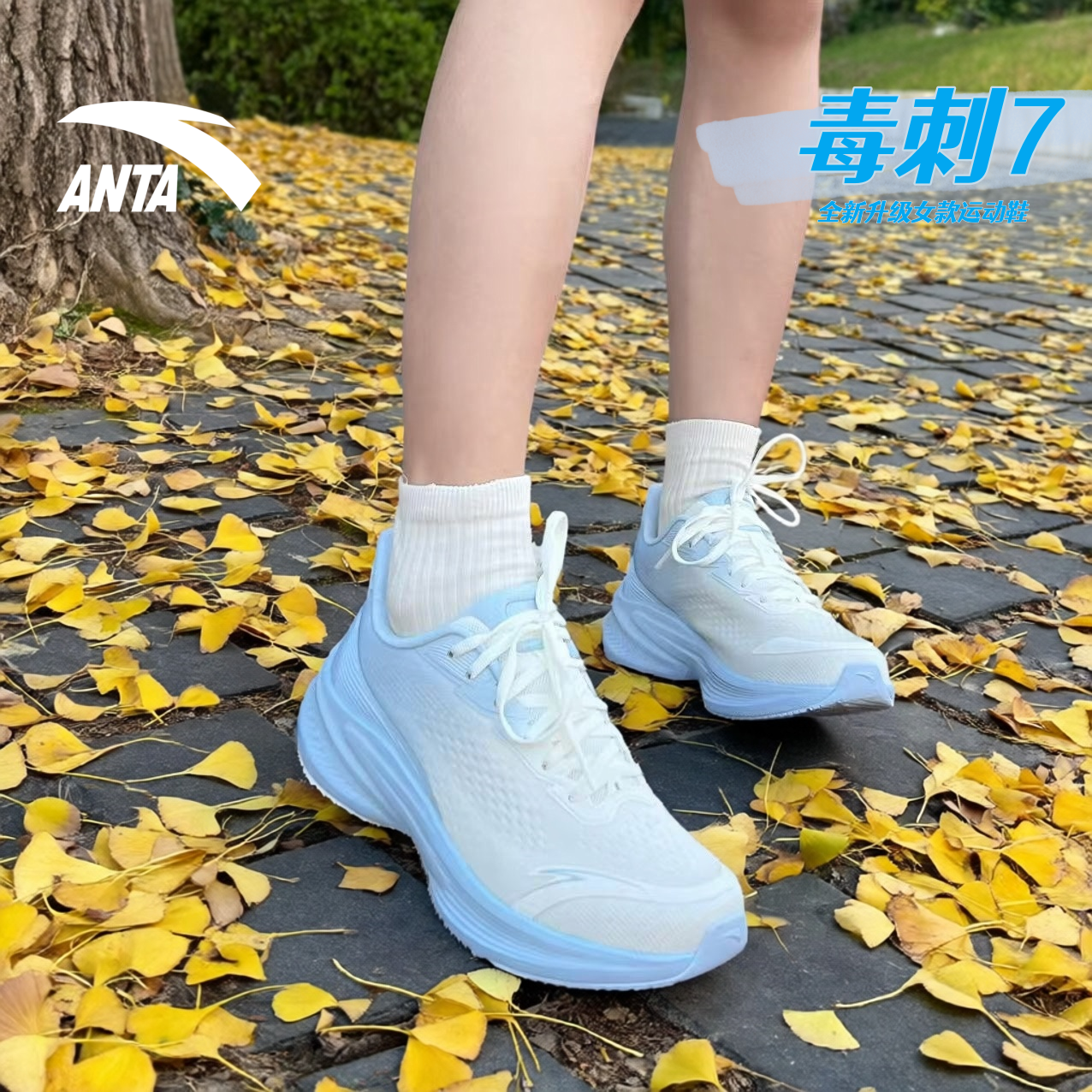 天猫安踏毒刺7女鞋运动鞋2025新款水天蓝透气跑步鞋轻便耐磨青年跑鞋