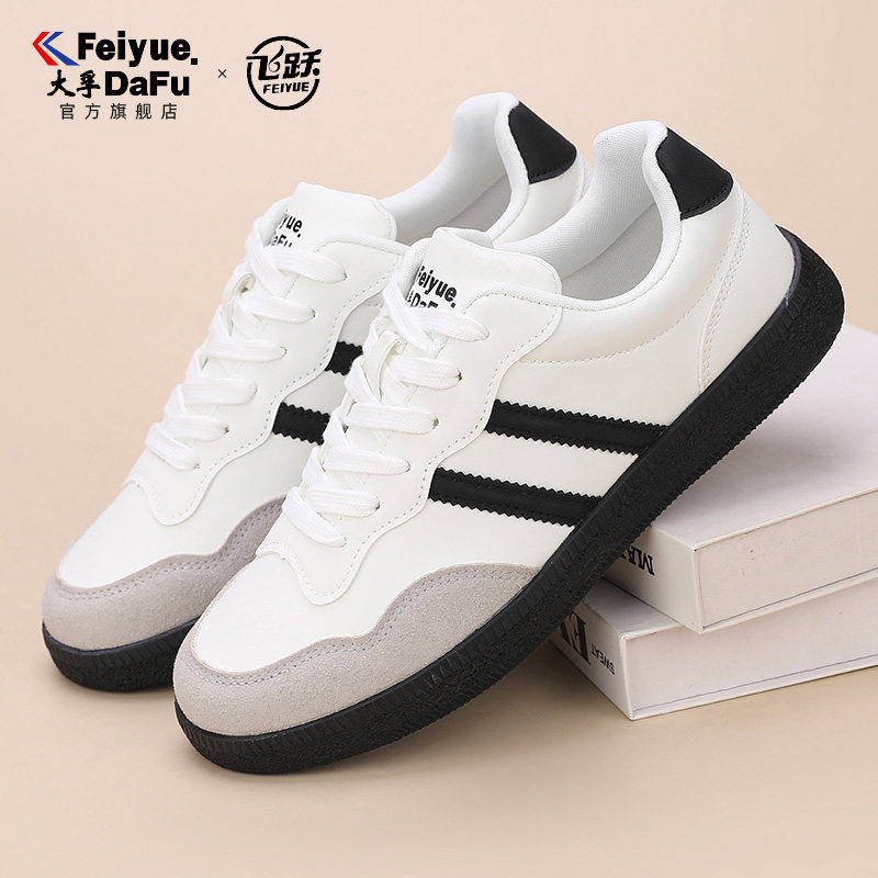 2026春季新款飞跃小白鞋德训鞋,采用优质超纤皮材质,质感细腻、耐穿易打理。经典德训鞋型融合简约小白鞋设计,线条流畅,百搭不挑风格,轻松驾驭通勤、休闲、校园等多种场景。轻便缓震鞋底提供舒适脚感,长时间行走也不累脚。多色可选,适配牛仔裤、裙装或运动风穿搭,尽显女性随性时尚态度。飞跃旗舰店正品保障,工艺精湛,细节考究,是2026年春季不可或缺的潮流单品,为日常造型增添清新活力与经典韵味。