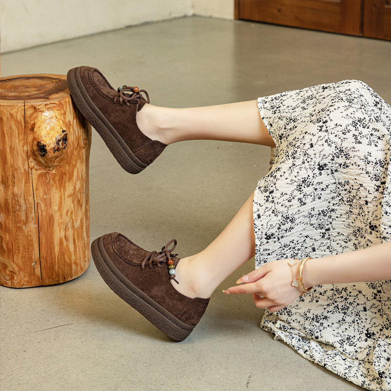 天猫宽胖脚肥大码女鞋41-43休闲鞋2025秋季新款复古系带深口单鞋25201