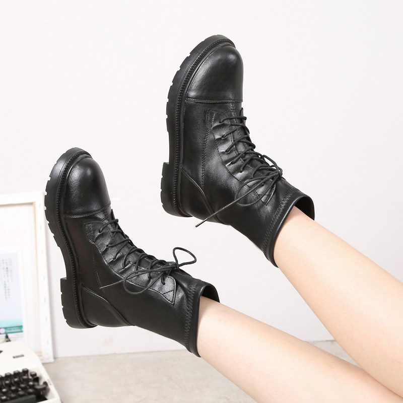 淘宝2024秋冬真皮马丁靴女英伦风新款春秋单靴冬季百搭棉靴系带女短靴