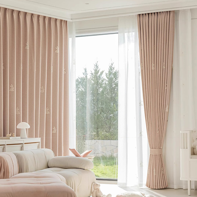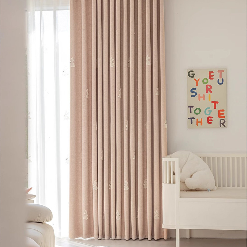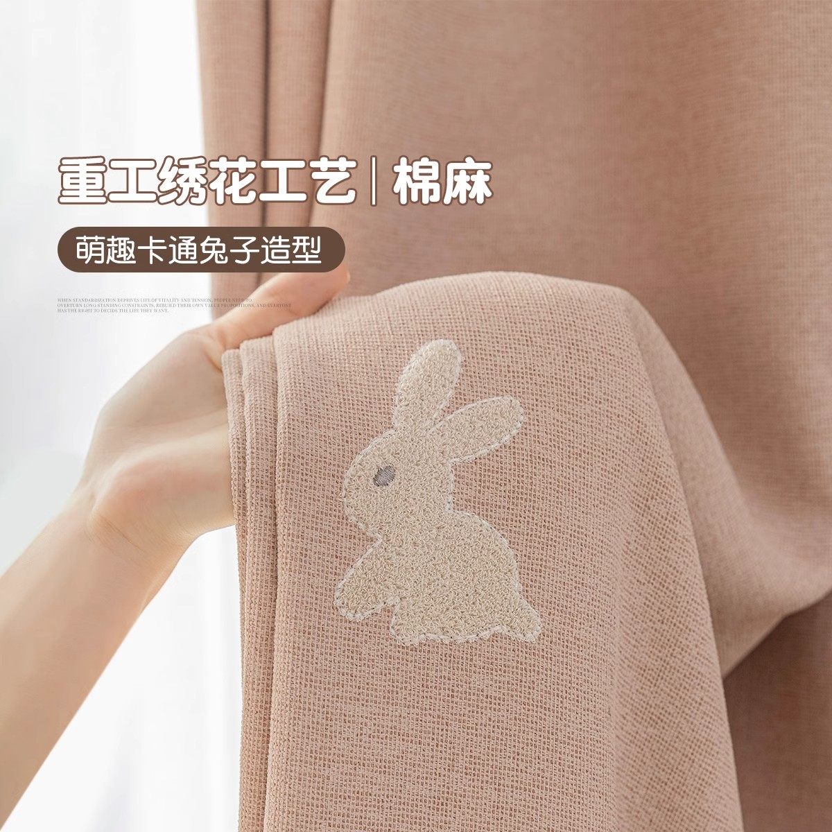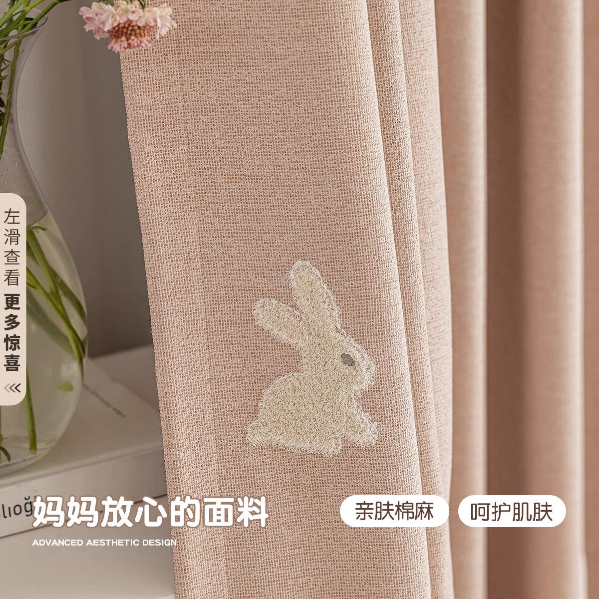 淘宝粉色卡通儿童房萌兔窗帘遮光女孩卧室飘窗绣花小兔窗纱帘2025新款