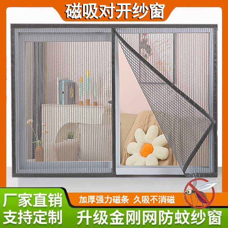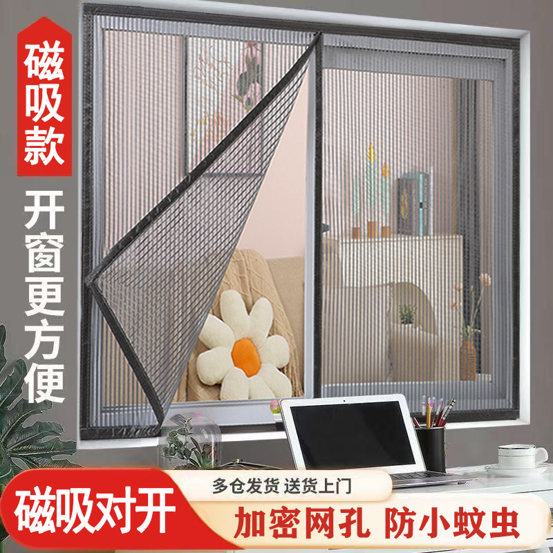 天猫加密磁吸款窗纱网自粘防蚊虫魔术贴自装对开纱窗网家用简易可拆卸