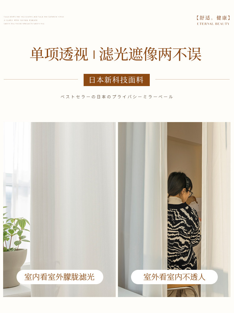 天透光不透人米色加厚遮阳透光纱窗帘纱帘隔断客厅阳台成品定制窗纱