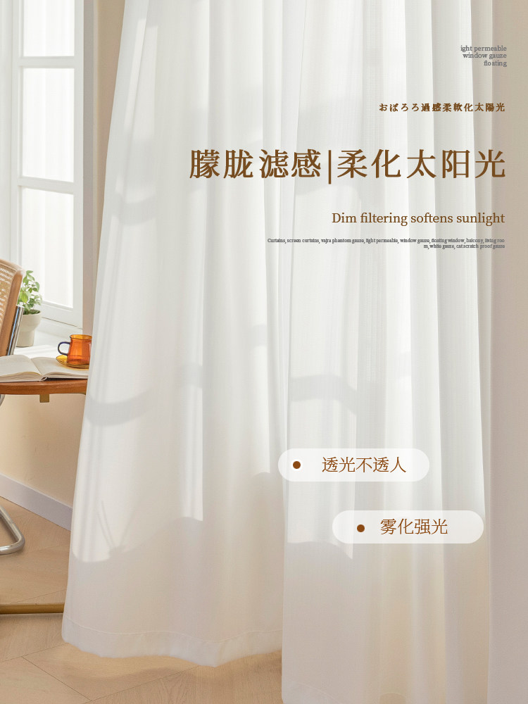 淘宝柯桥窗帘白纱窗纱透光不透人客厅阳台卧室2024新款厂家直销挂钩式