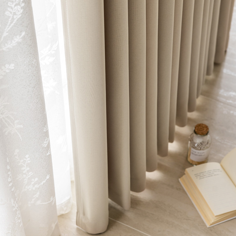淘宝奶茶色卧室遮光窗帘定制客厅纱帘法式轻奢窗纱透光不透人全屋定制