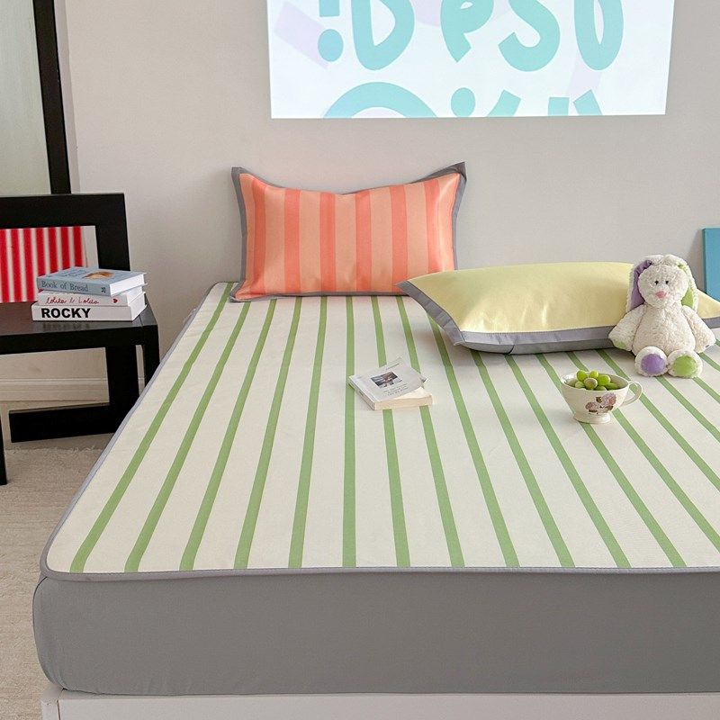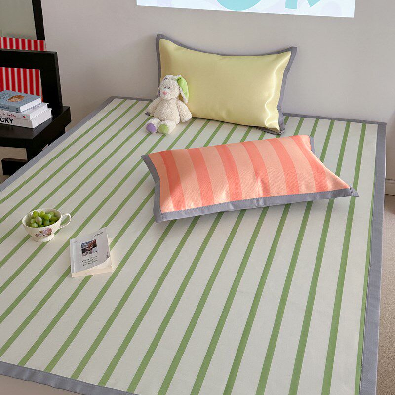 淘宝仙美拼色条纹高端劲凉冰丝凉席三件套夏季裸睡空调软席加厚养生席