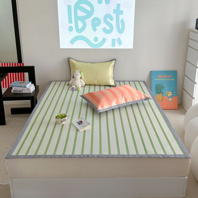 仙美拼色条纹高端劲凉冰丝凉席三件套,专为夏季清凉舒睡而设计。采用高品质冰丝材质,触感柔滑细腻,透气排湿,久躺不闷热,特别适合裸睡和空调房使用。加厚工艺提升支撑力与耐用性,兼具舒适与养生功效。拼色条纹设计时尚雅致,彰显现代家居品味。三件套包含席面、枕套及绑带,适配多种床型,安装便捷。凉而不冰,有效调节体感温度,带来整夜清爽安眠体验。无论是追求品质生活,还是注重健康睡眠,这款凉席都是夏日理想之选,让您在炎炎夏日尽享清凉惬意。