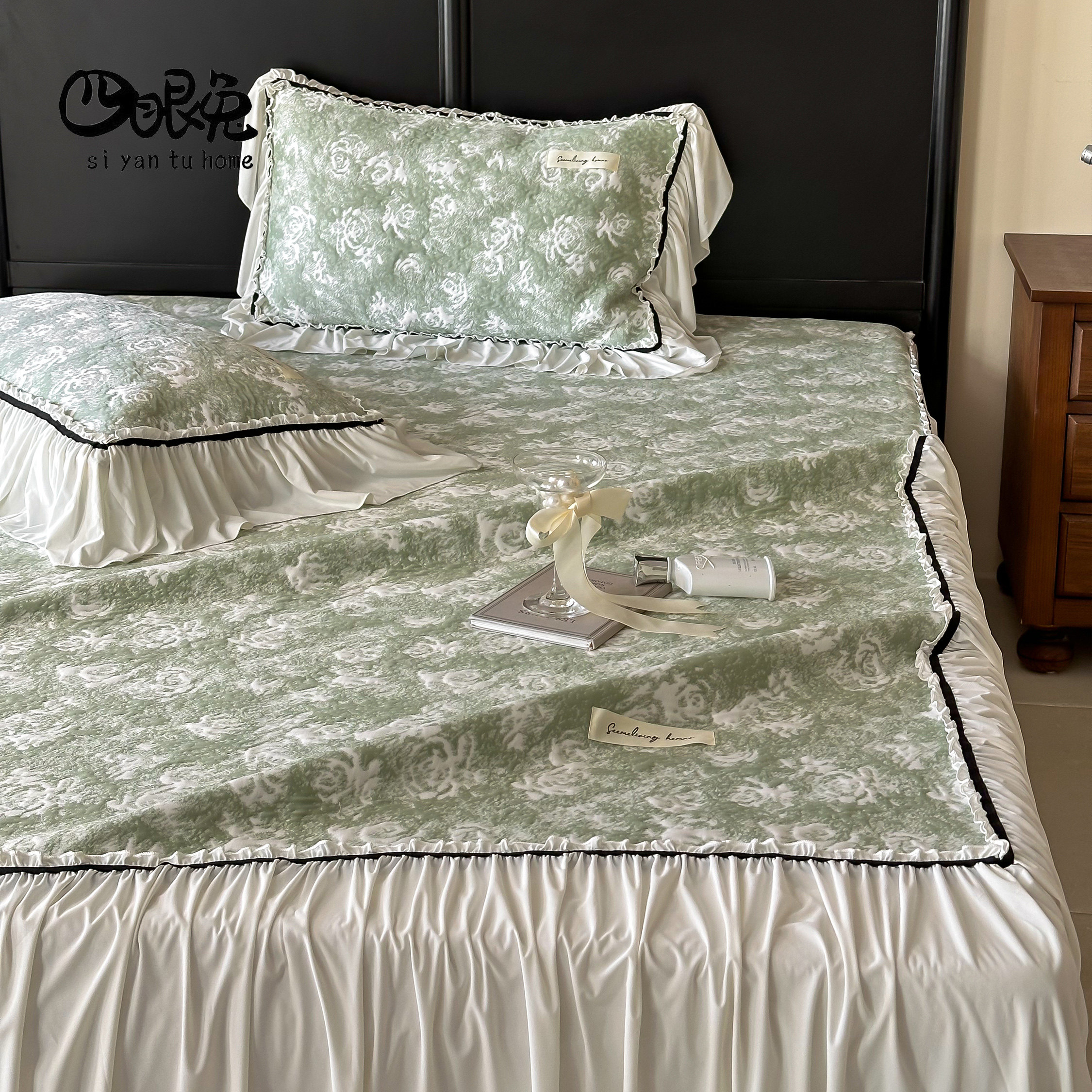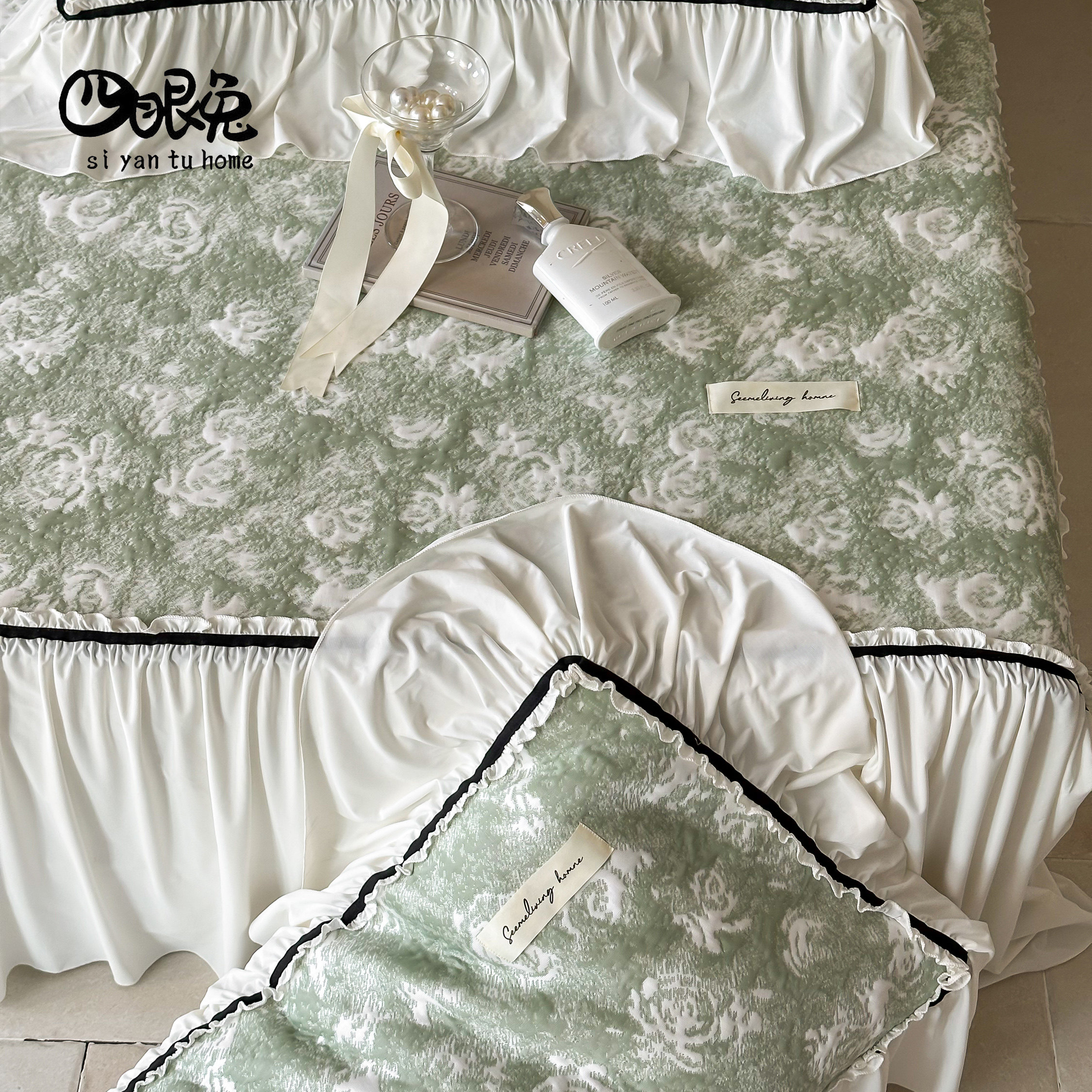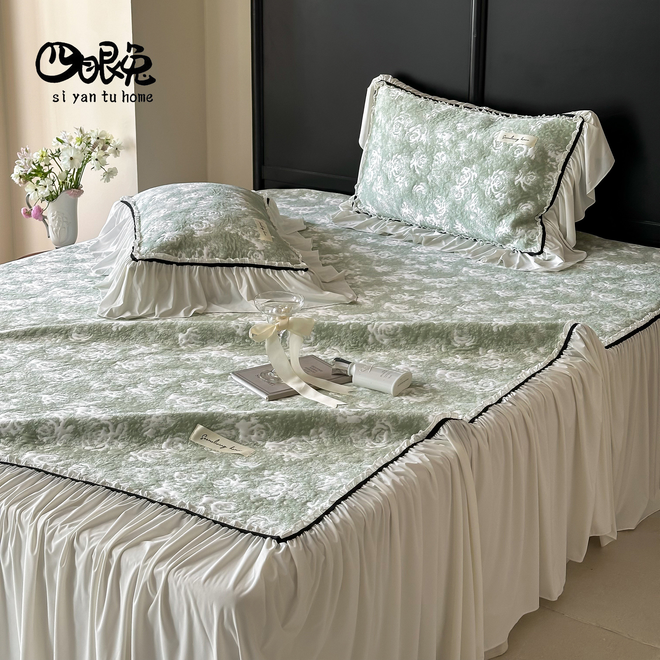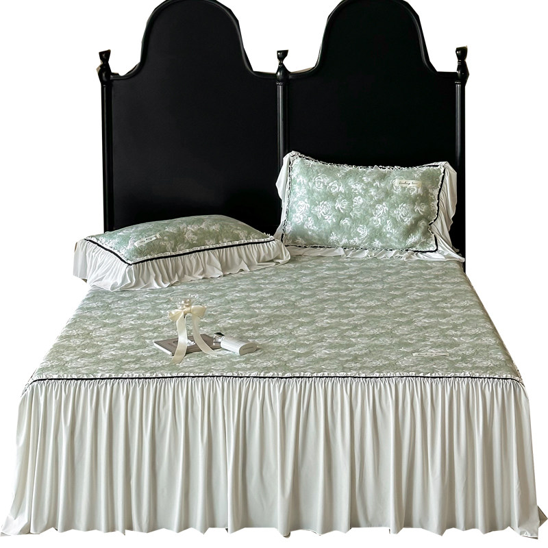 畅意夏野︱法式凉感丝大提花冰丝凉席三件套床裙款夏季空调软席子