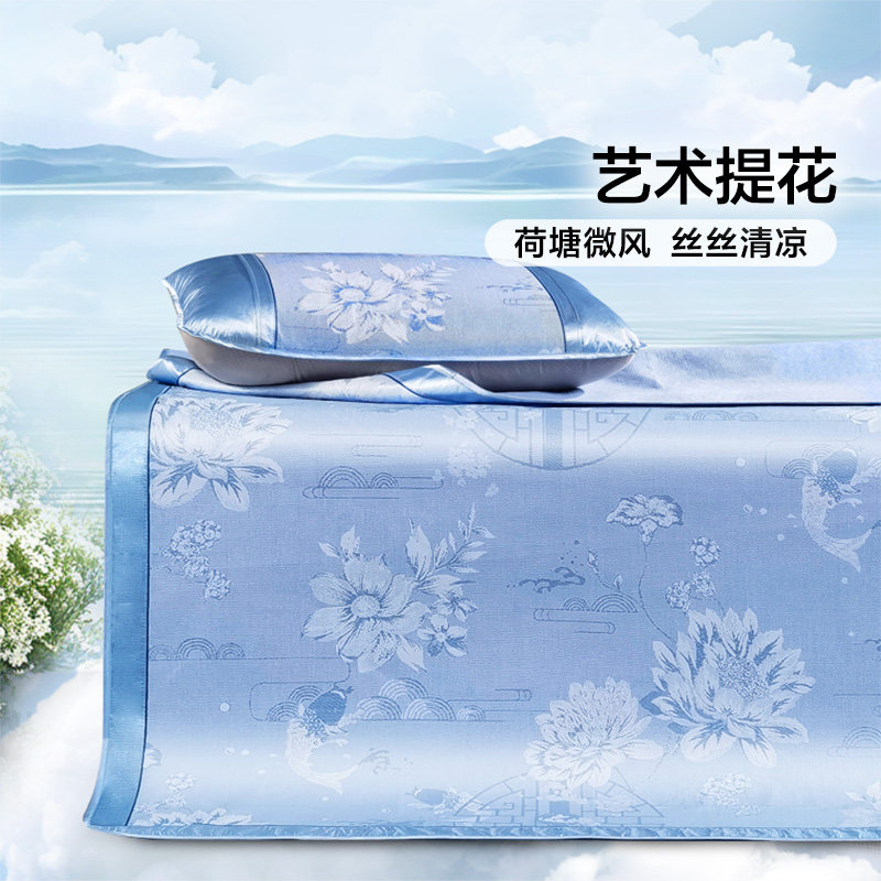 淘宝富安娜冰丝凉席夏季提花席子套件学生宿舍可折叠夏天空调家用凉席