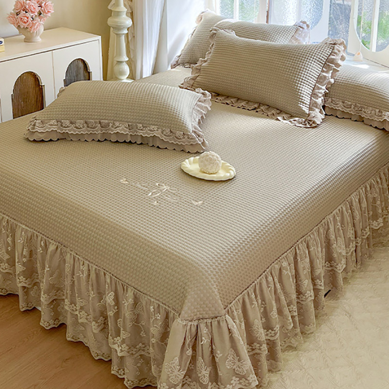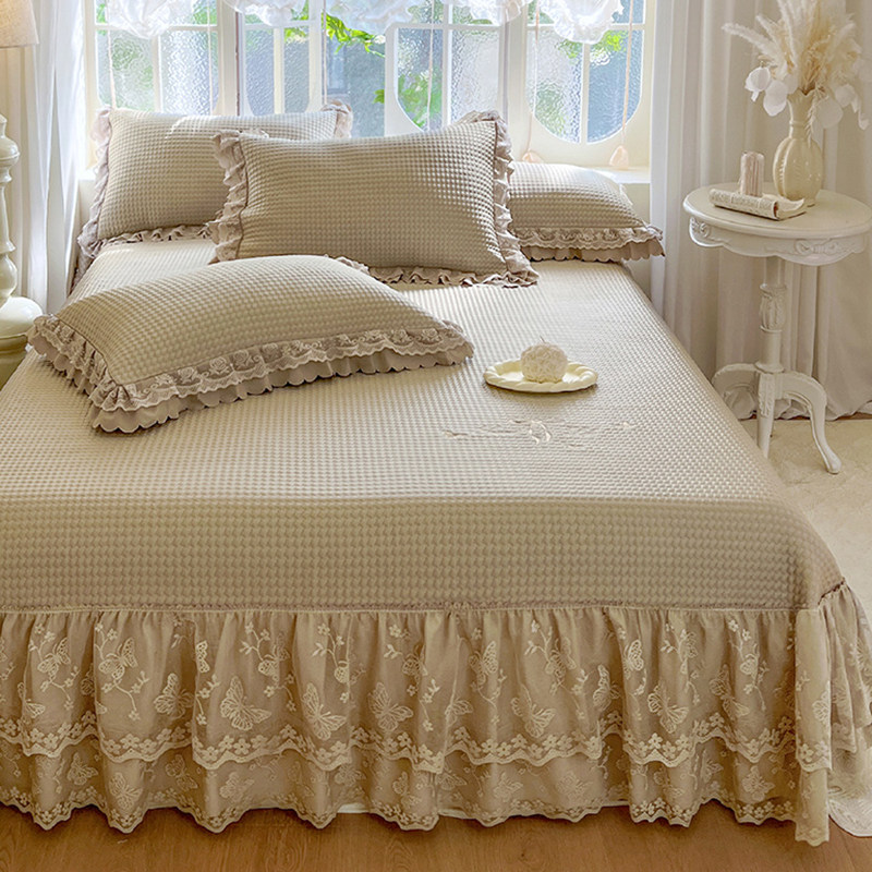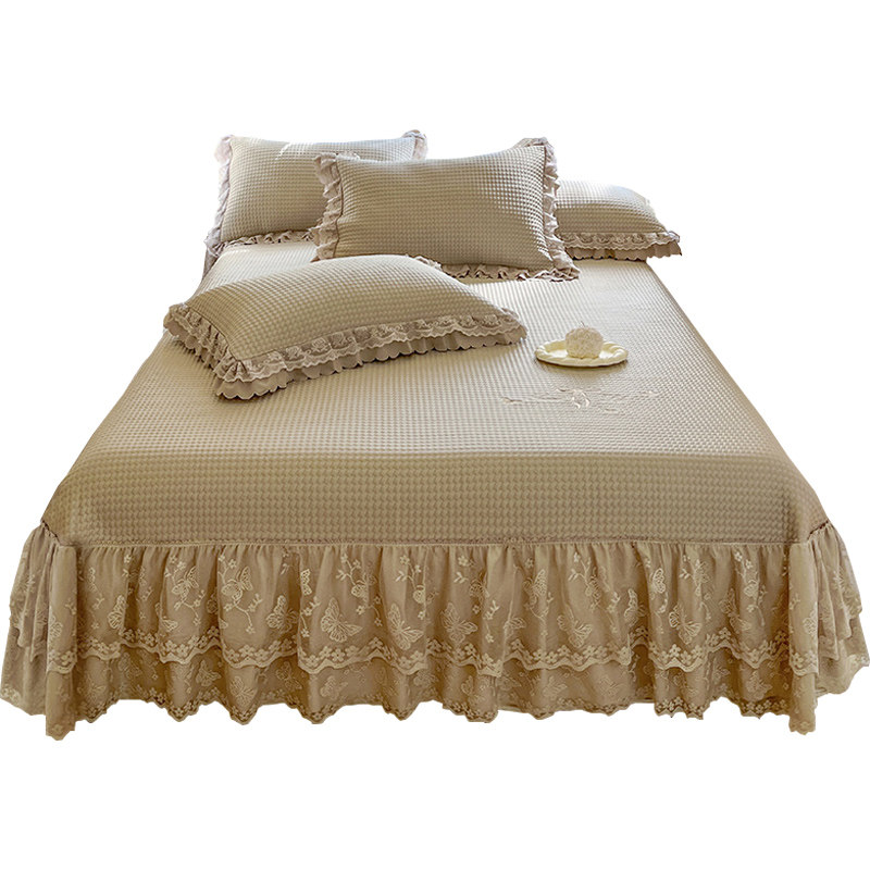 天猫夏季专用凉感裸睡冰丝凉席三件套公主风蕾丝双层花边空调软席垫子