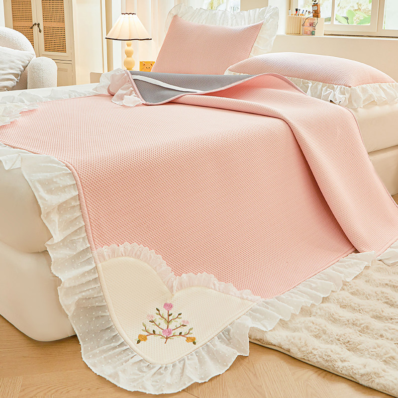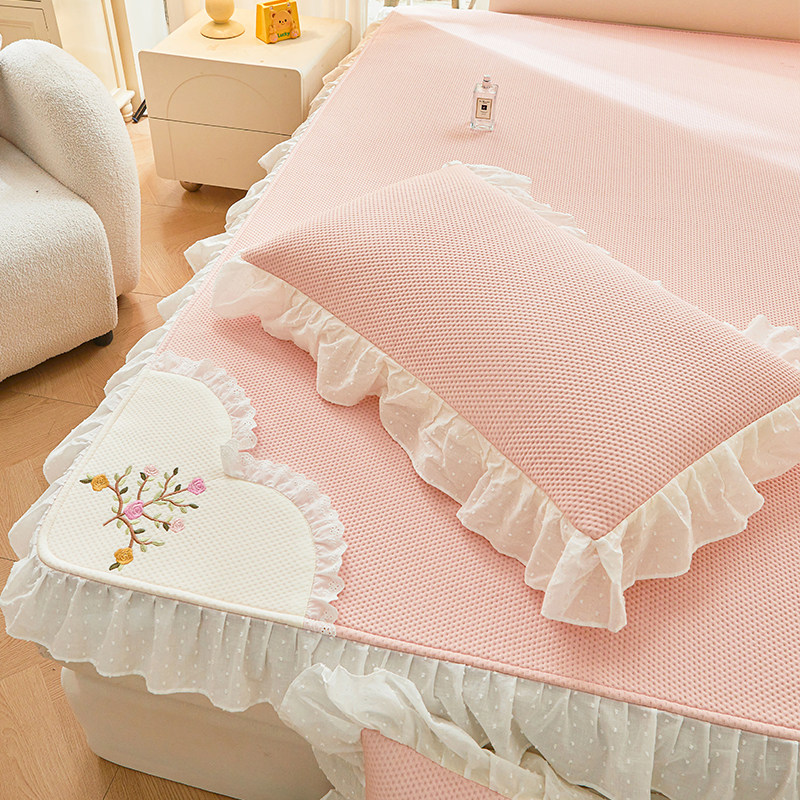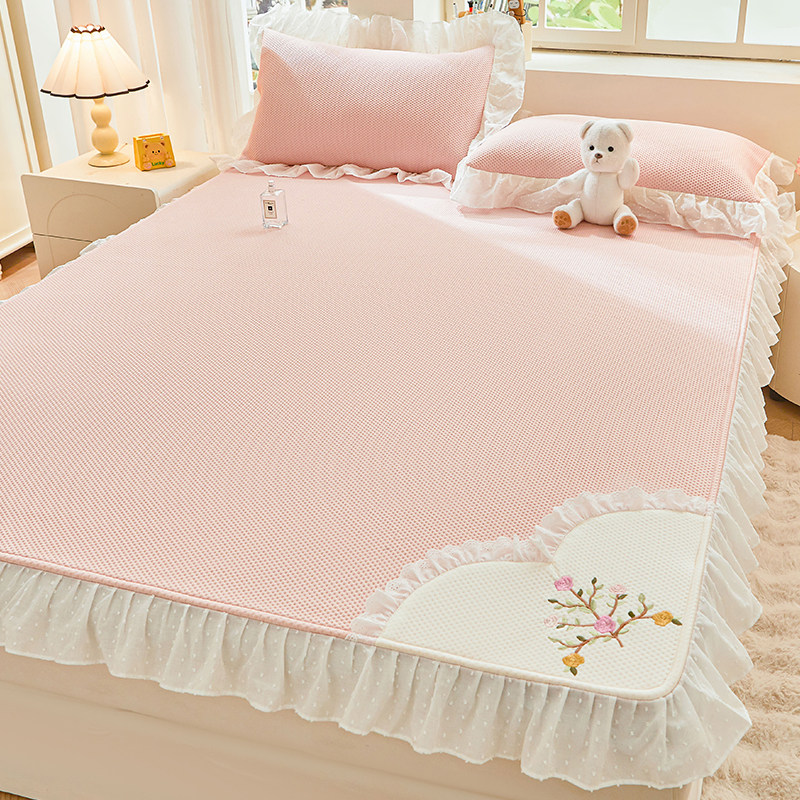 天猫夏天凉感冰丝凉席豆豆席a类母婴级可机洗花边空调席三件套床笠款