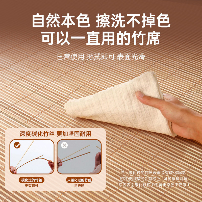 2025年新款夏季凉席竹席,采用优质天然竹材与环保草席双面设计,冬夏两用,四季皆宜。正面精选高密度碳化竹片,清凉透气、防霉抑菌,有效缓解夏日闷热;反面为柔韧亲肤的草席材质,温润舒适,适合春秋冬季使用。席面光滑无毛刺,边缘加固包边工艺,耐用不易开裂。可折叠设计,收纳便捷,节省空间,轻松适配多种床型。支持定制尺寸,满足单人床、双人床及榻榻米等不同需求。环保无异味,易清洁打理,是家庭、宿舍、出租屋的理想选择。让舒适与实用兼具,尽享清爽睡眠体验。
