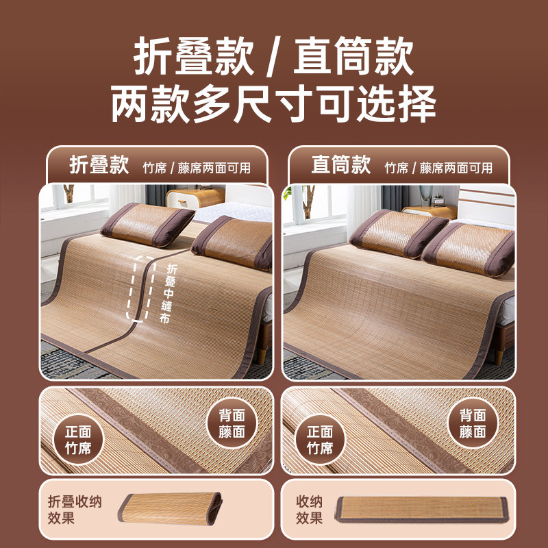 竹席凉席夏天2025新款冰丝席冬夏两用天然双面席子可折叠宿舍草席