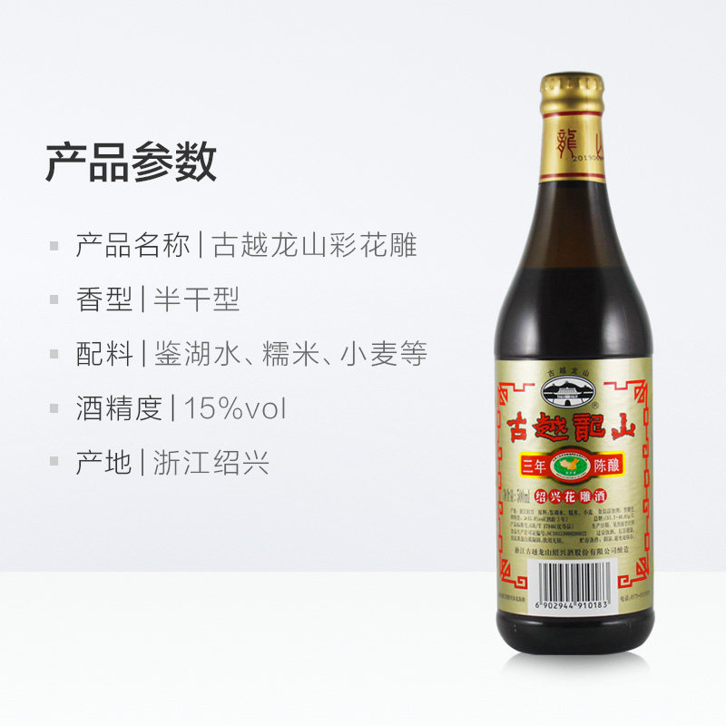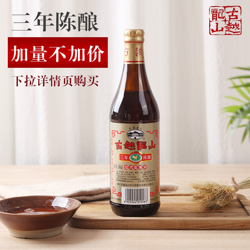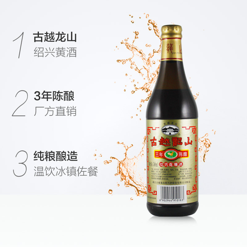 天猫古越龙山绍兴黄酒三年陈花雕500ml*12瓶糯米整箱料酒老酒