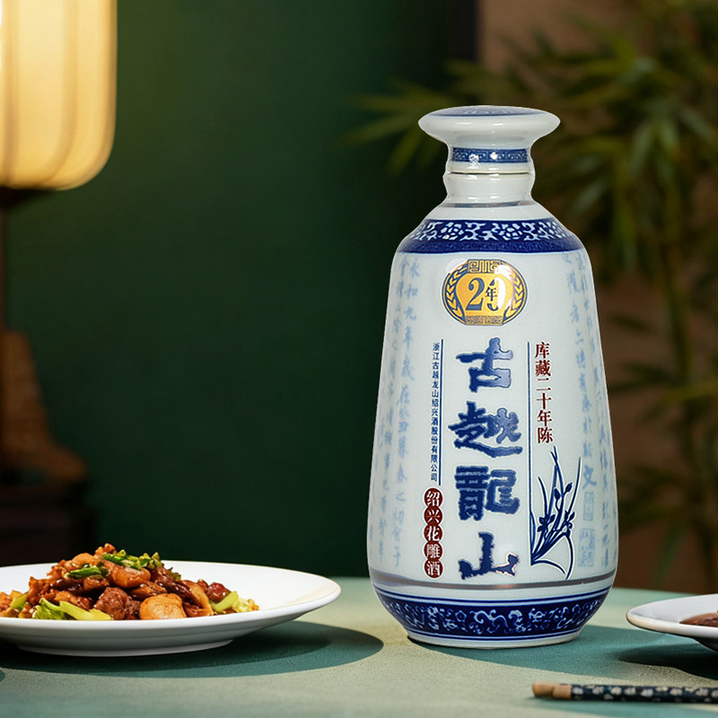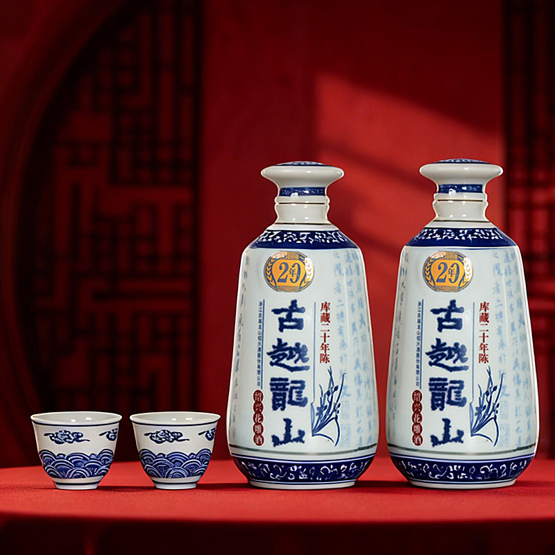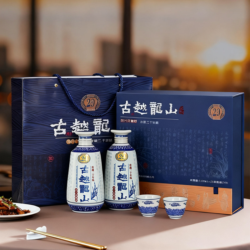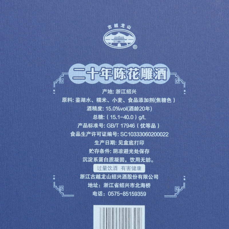 天猫古越龙山绍兴黄酒库藏二十年陈礼盒500ml*2瓶花雕酒半干型